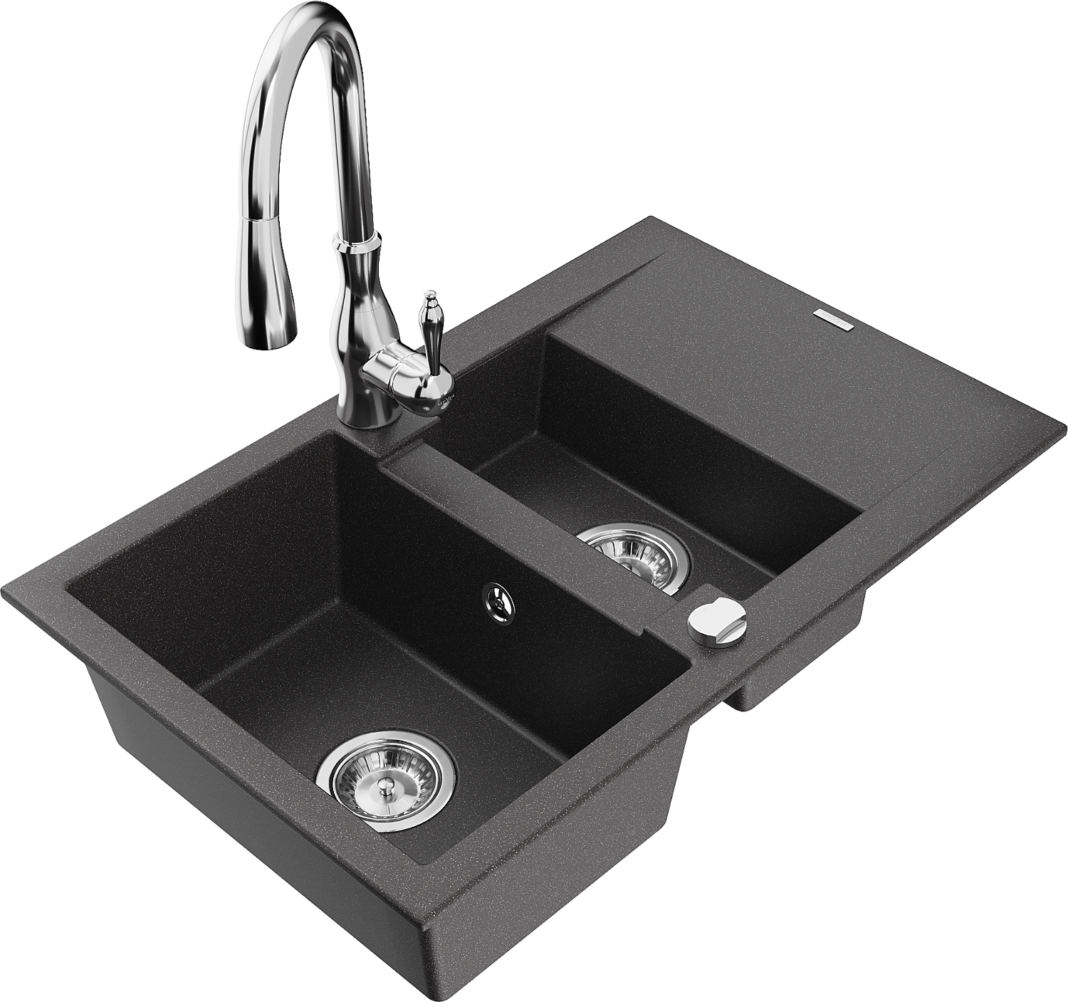 Mexen Gaspar 1,5 rekeszes gránit mosogató csepegtetővel és Savita konyhai csappal, fekete pettyezett - 6507-76-672601-00