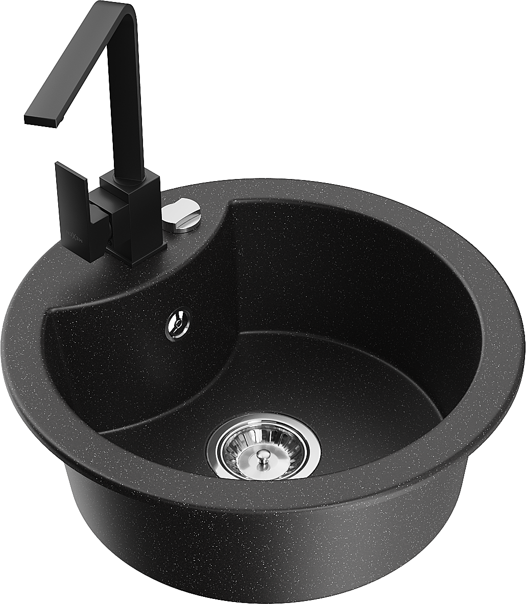 Mexen Diego gránit mosogató 1-kamrás Rita konyhai csapteleppel, fekete/ezüst metál - 6512-73-670300-70