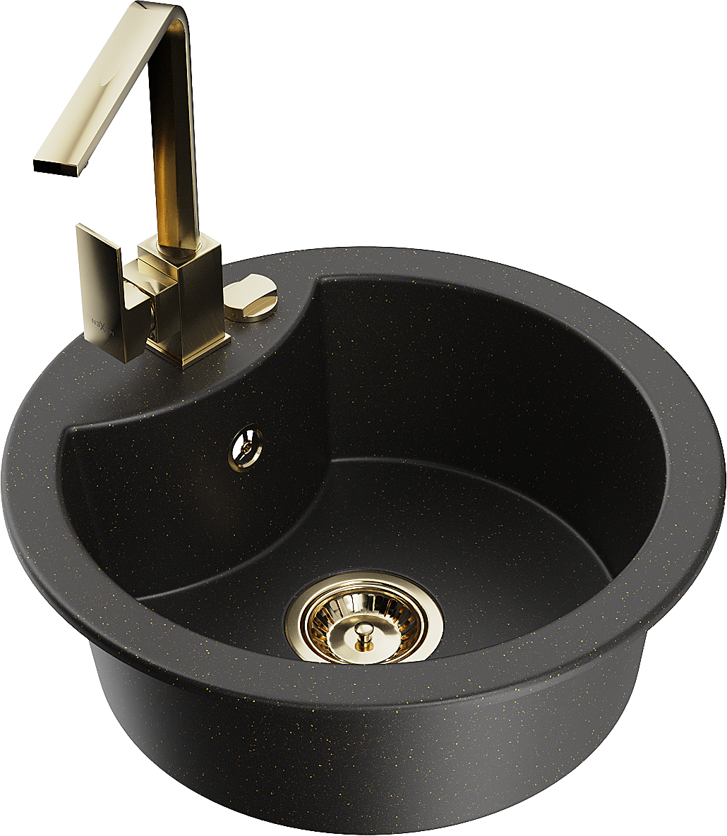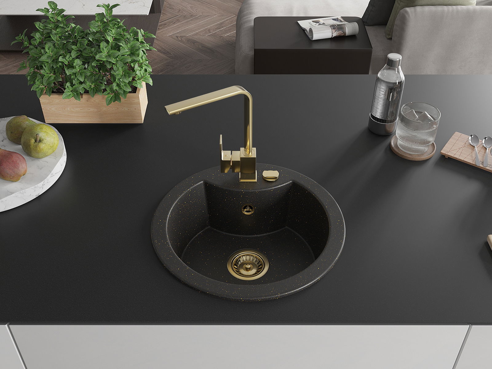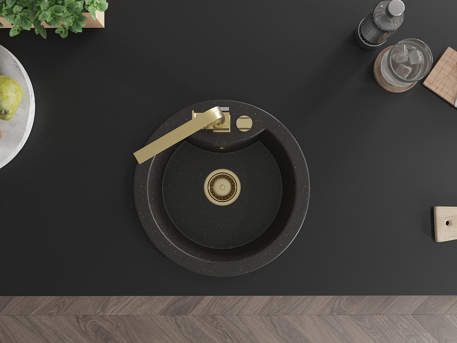 Mexen Diego 1-fazékos gránit mosogató Rita konyhai csapteleppel, fekete/arany metál - 6512-75-670300-50