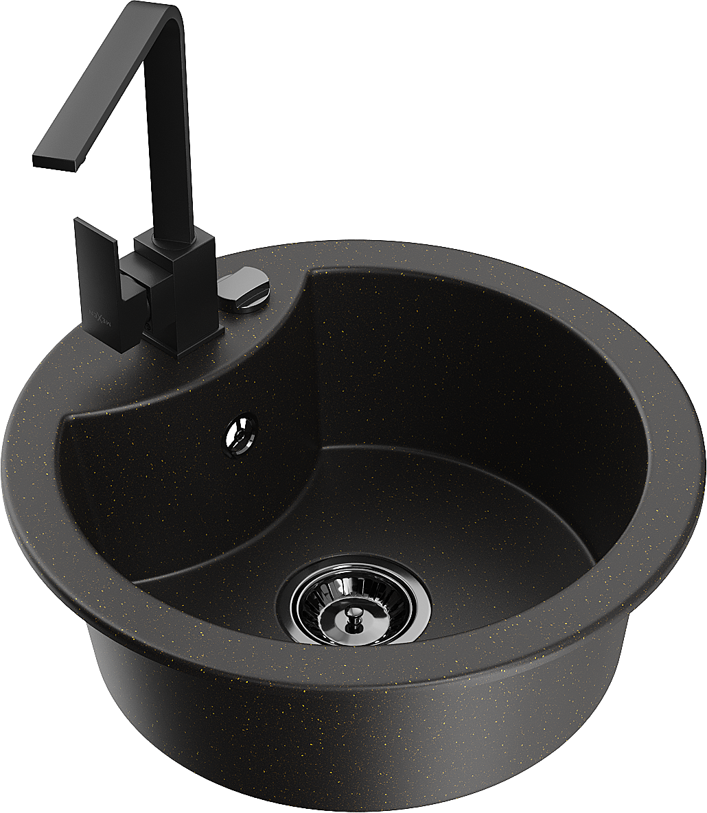Mexen Diego gránit mosogató 1-medencés konyhai csapteleppel Rita, fekete/arany metál - 6512-75-670300-70-B