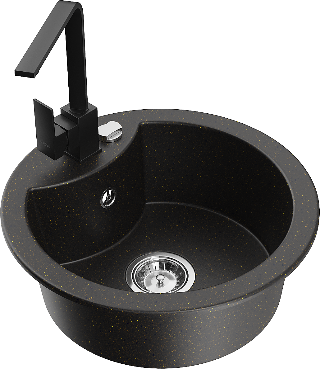 Mexen Diego 1 rekeszes gránit mosogató Rita konyhai csapteleppel, fekete/arany metál - 6512-75-670300-70