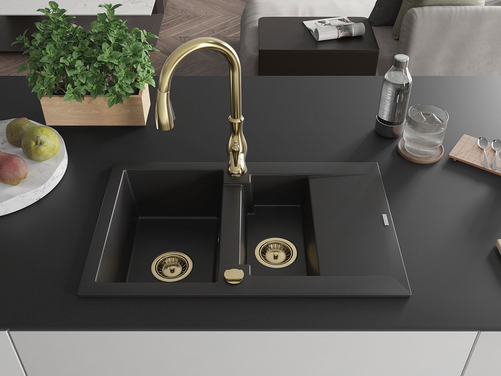 A mosogató kiváló minőségű gránitból készül. Ez egy elegáns és mindenekelőtt minden konyhához praktikus kiegészítés, stílusától függetlenül. A kiváló minőségű és a gránit tartósság biztosítja a sok éves használatát.