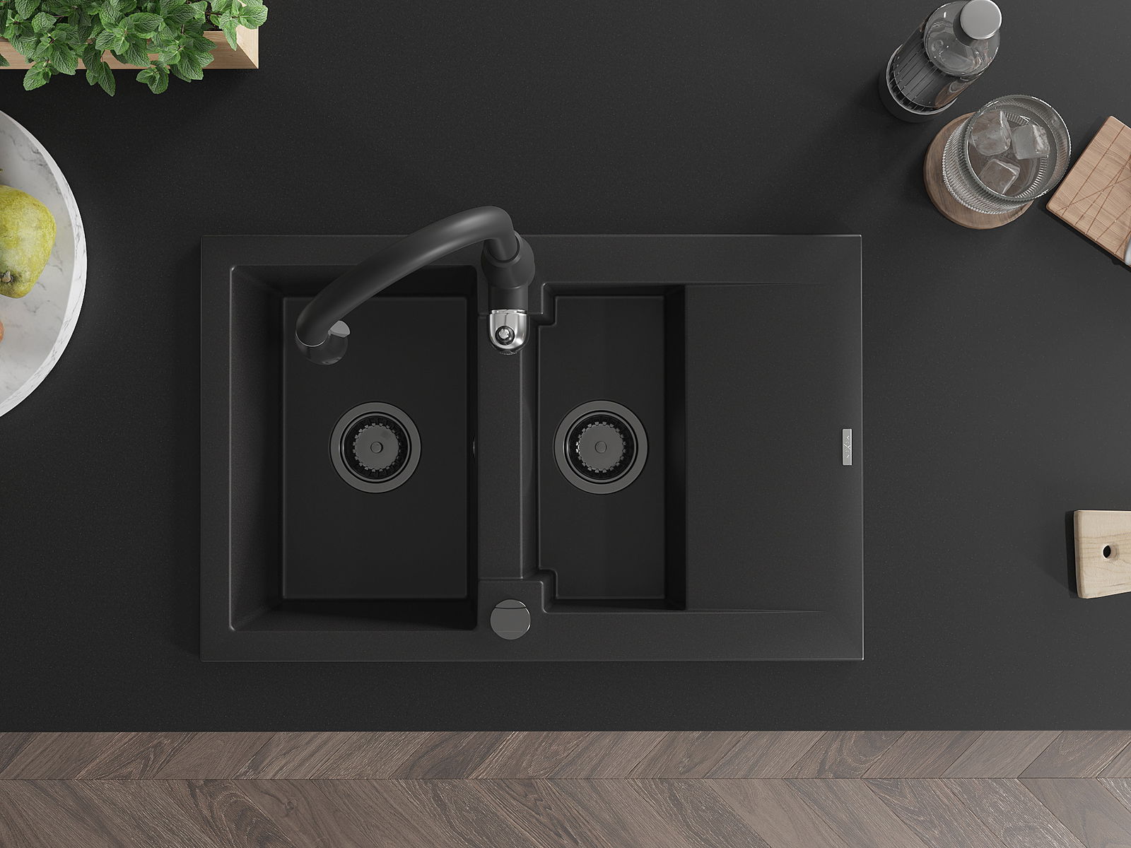 Mexen Gaspar gránit mosogató 1,5 rekeszes csepegtetővel és Savita konyhai csappal, fekete - 6507-77-672601-70-B