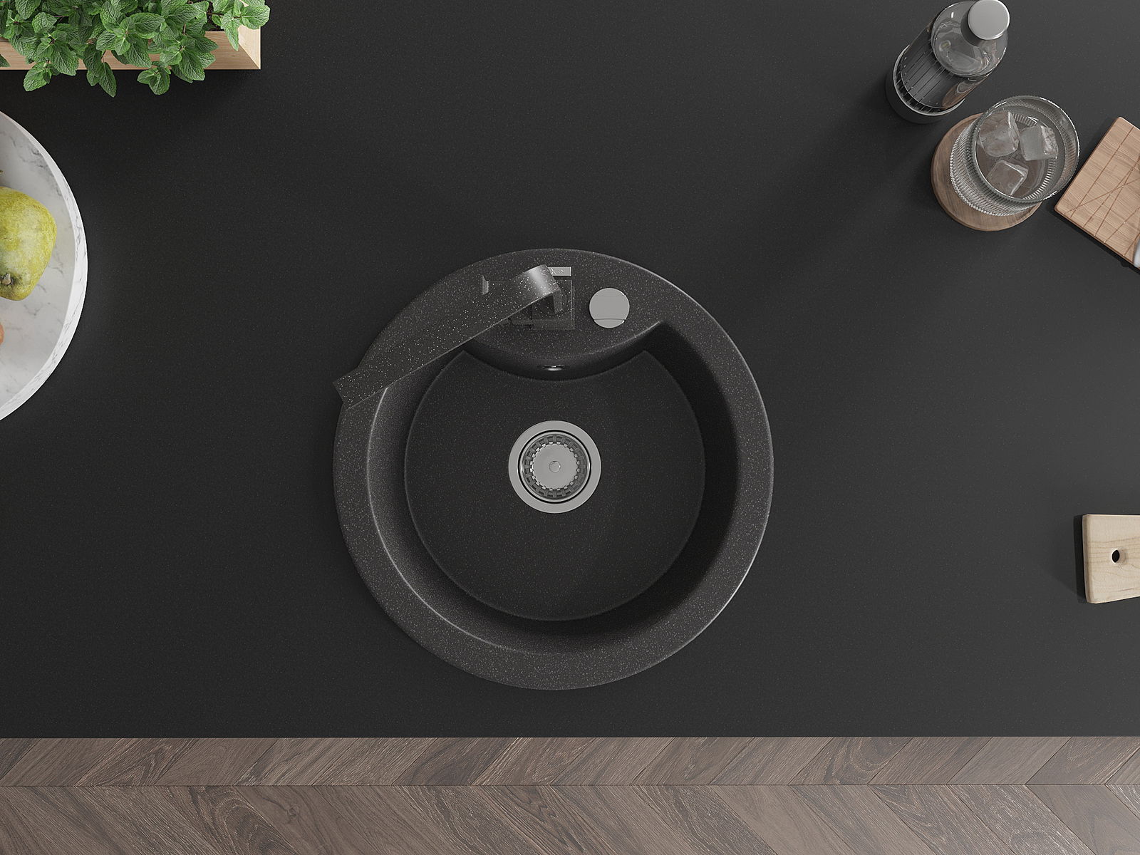 A mosogató magas minőségű gránitból készült. Elegáns, de mindenekelőtt praktikus kiegészítője minden konyhának, függetlenül annak stílusától. A gránit magas minősége és tartóssága hosszú távú használatot biztosít.