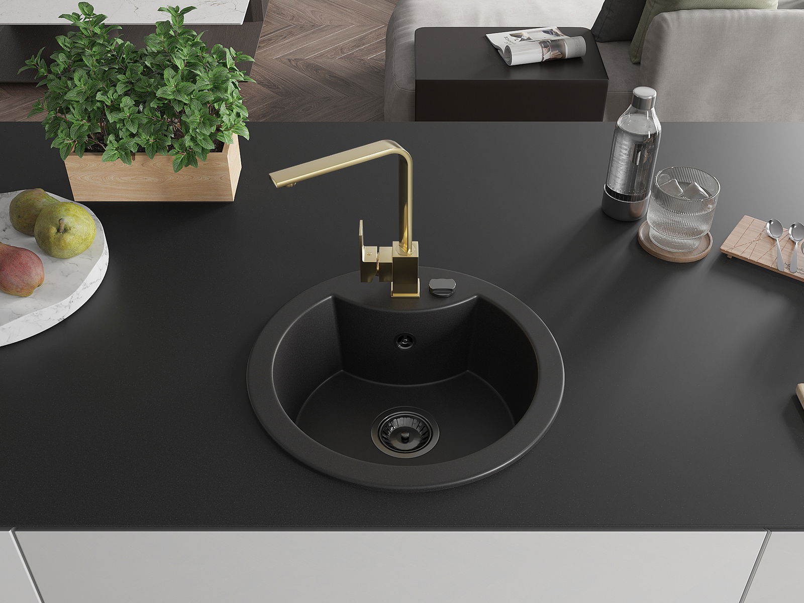 A mosogató magas minőségű gránitból készült. Elegáns, de mindenekelőtt praktikus kiegészítője minden konyhának, függetlenül annak stílusától. A gránit magas minősége és tartóssága hosszú távú használatot biztosít.