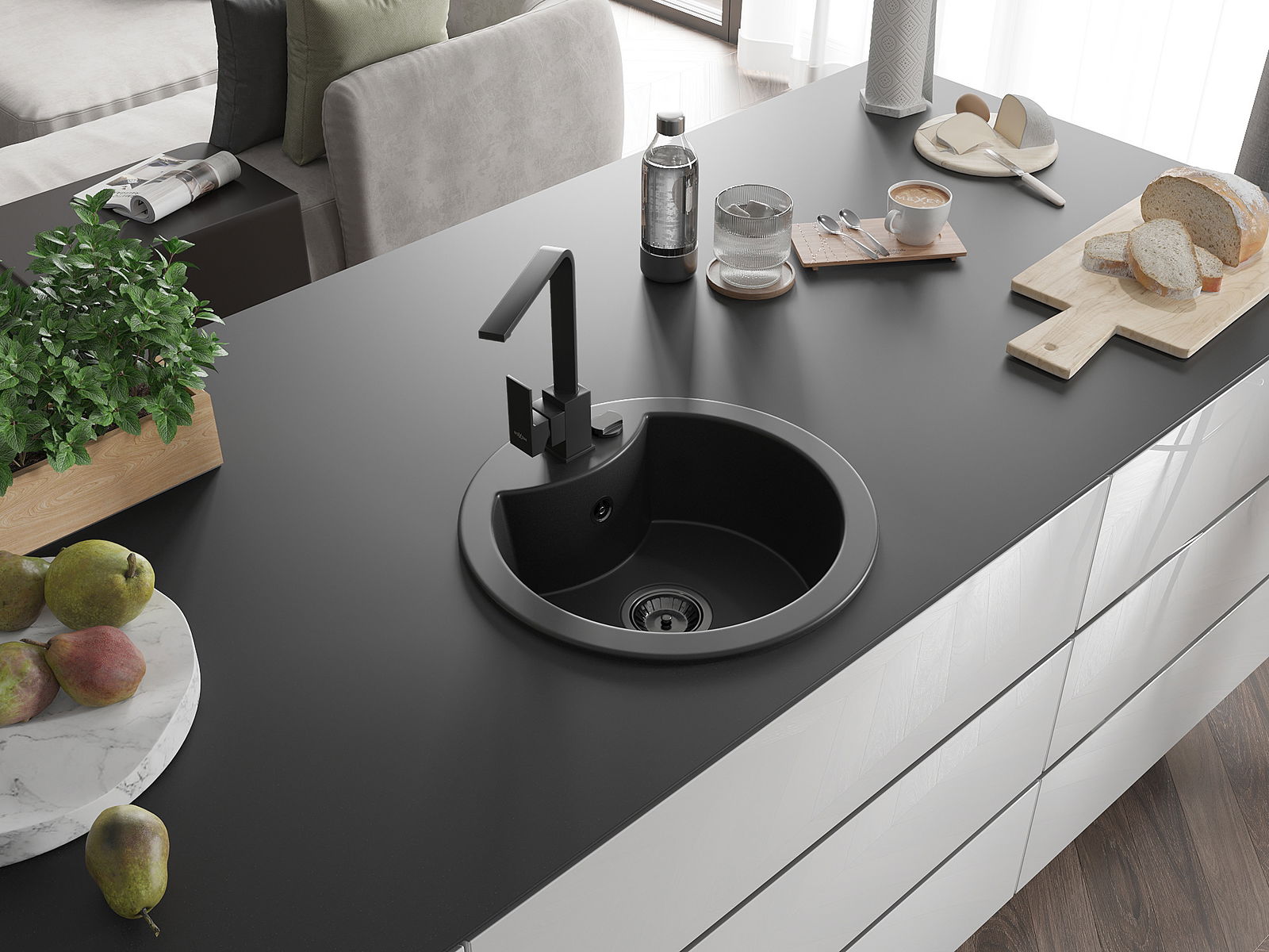 A mosogató magas minőségű gránitból készült. Elegáns, de mindenekelőtt praktikus kiegészítője minden konyhának, függetlenül annak stílusától. A gránit magas minősége és tartóssága hosszú távú használatot biztosít.