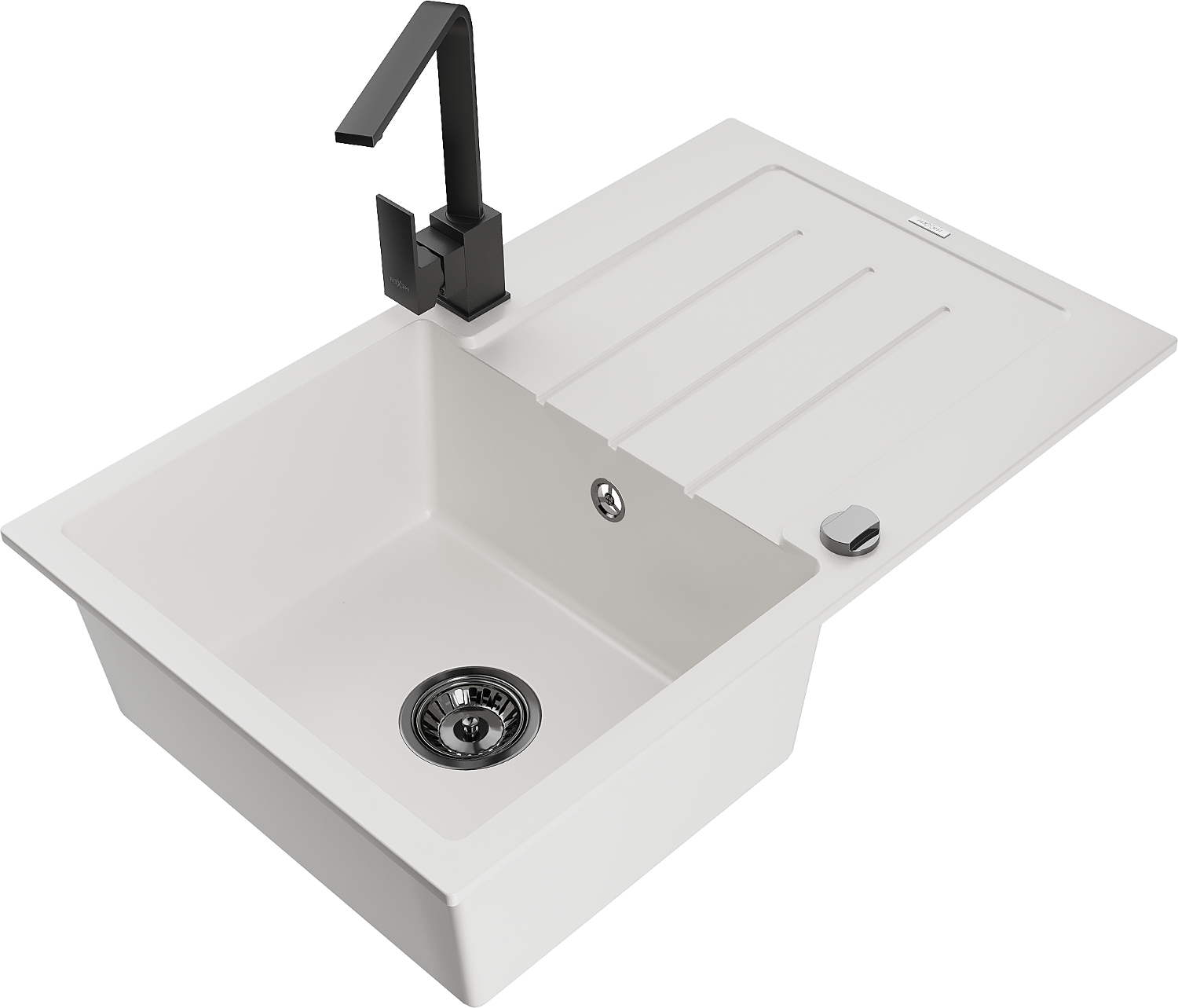 Mexen Bruno egymedencés gránit mosogató csepegtetővel és Rita konyhai csapteleppel, fehér - 6513-20-670300-70