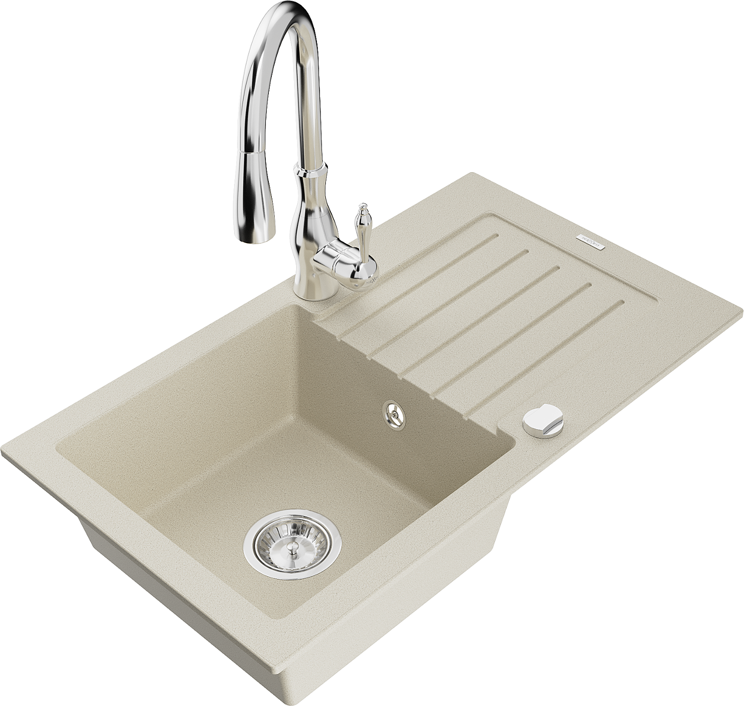 Mexen Pablo egymedencés gránit mosogató csepegtetőtálcával és Savita konyhai csapteleppel, bézs - 6510-69-672601-00
