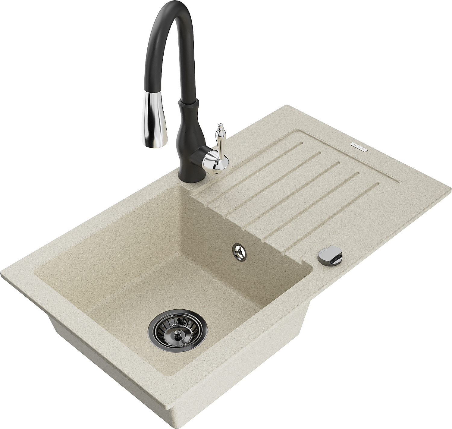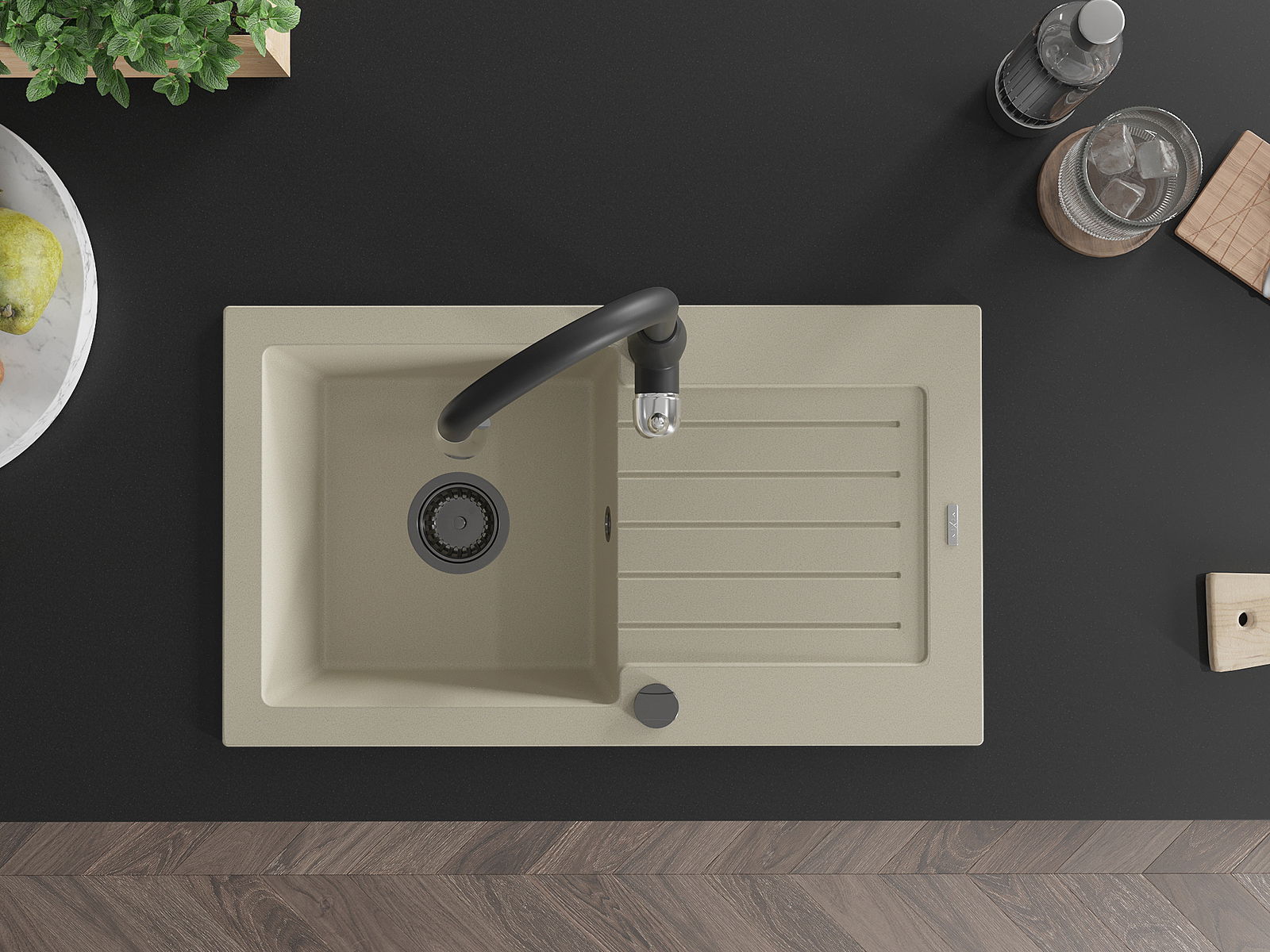 Mexen Pablo gránit mosogató 1-medencés, csepegtetővel és Savita konyhai csapteleppel, bézs - 6510-69-672601-70