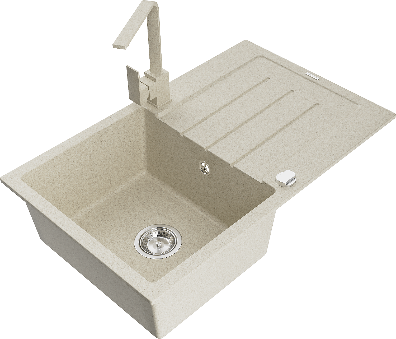 Mexen Bruno egymedencés gránit mosogató csepegtetővel és Rita konyhai csappal, bézs - 6513-69-670300-69