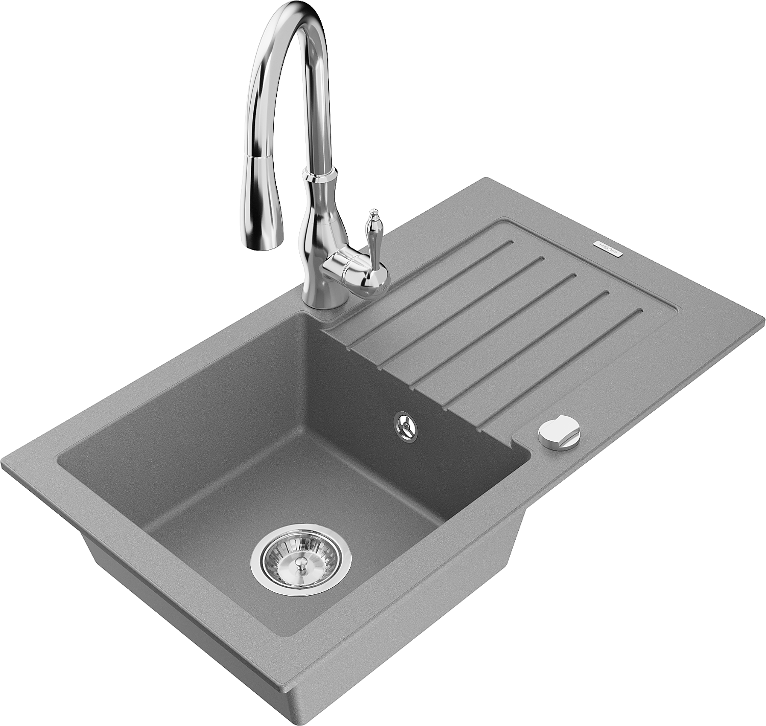 Mexen Pablo 1-medencés gránit mosogató csepegtetővel és Savita konyhai csapteleppel, szürke - 6510-71-672601-00