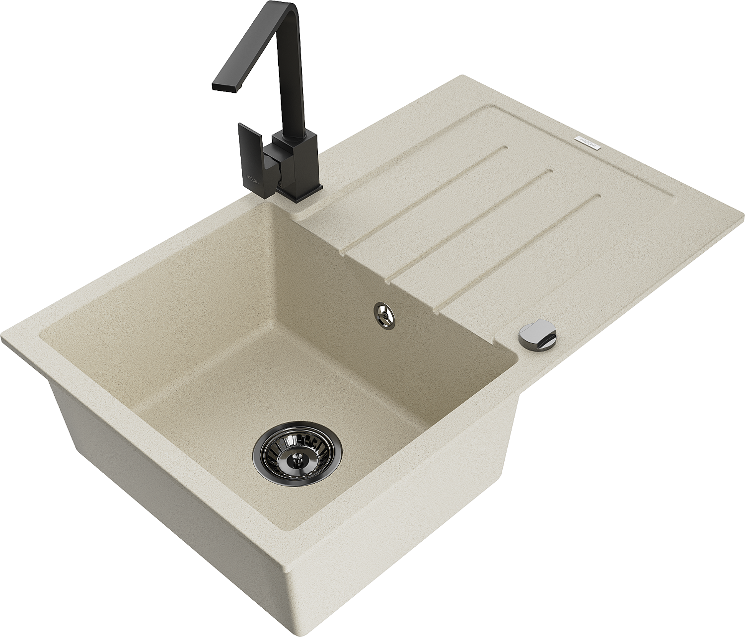 Mexen Bruno 1-medencés gránit mosogató lefolyóval és Rita konyhai csapteleppel, bézs - 6513-69-670300-70