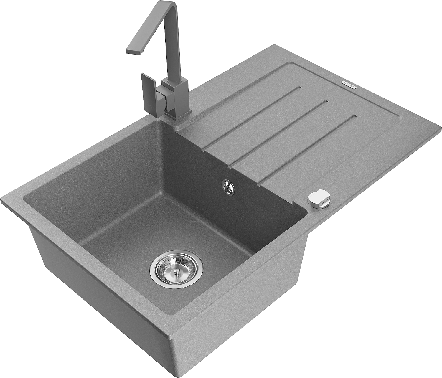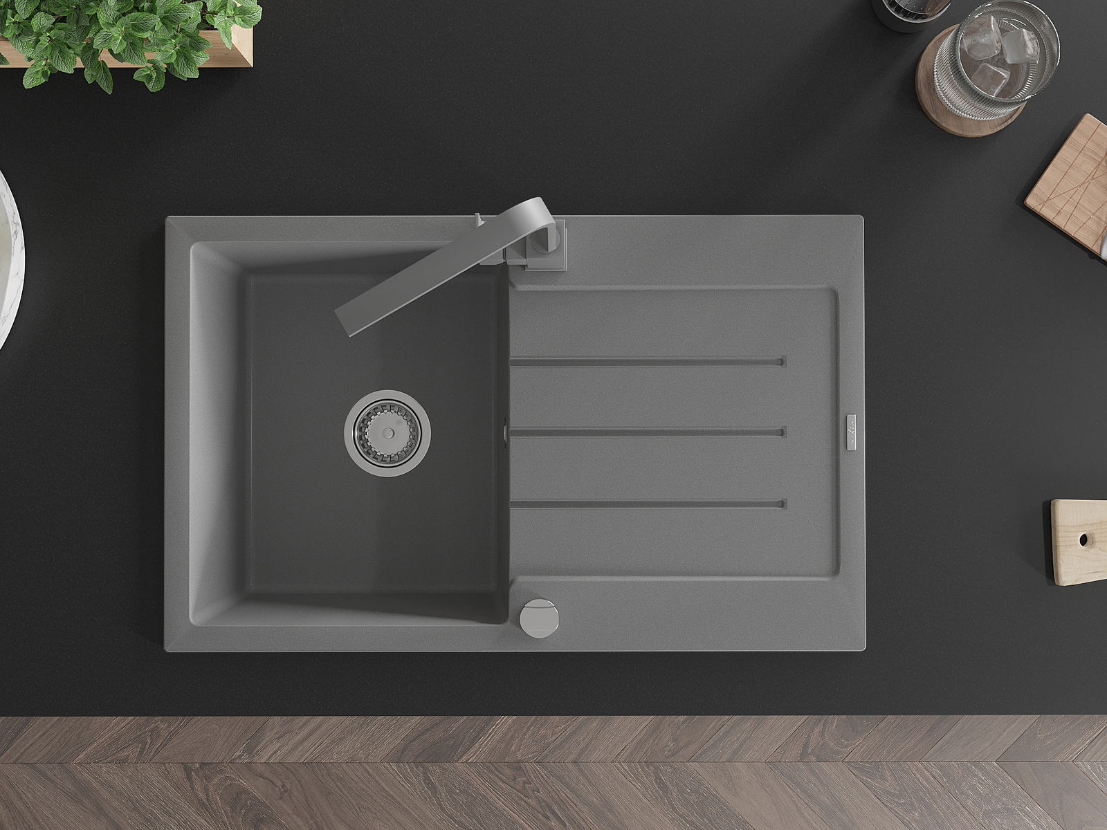Mexen Bruno egymedencés gránit mosogató medencemosóval és Rita konyhai csappal, szürke - 6513-71-670300-71