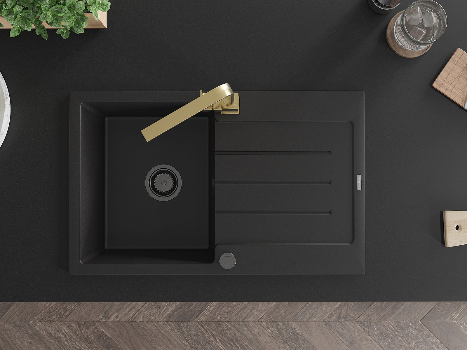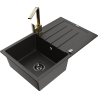 Mexen Bruno egymedencés gránit mosogató csepegtetővel és Rita konyhai csapteleppel, fekete - 6513-77-670300-50-B