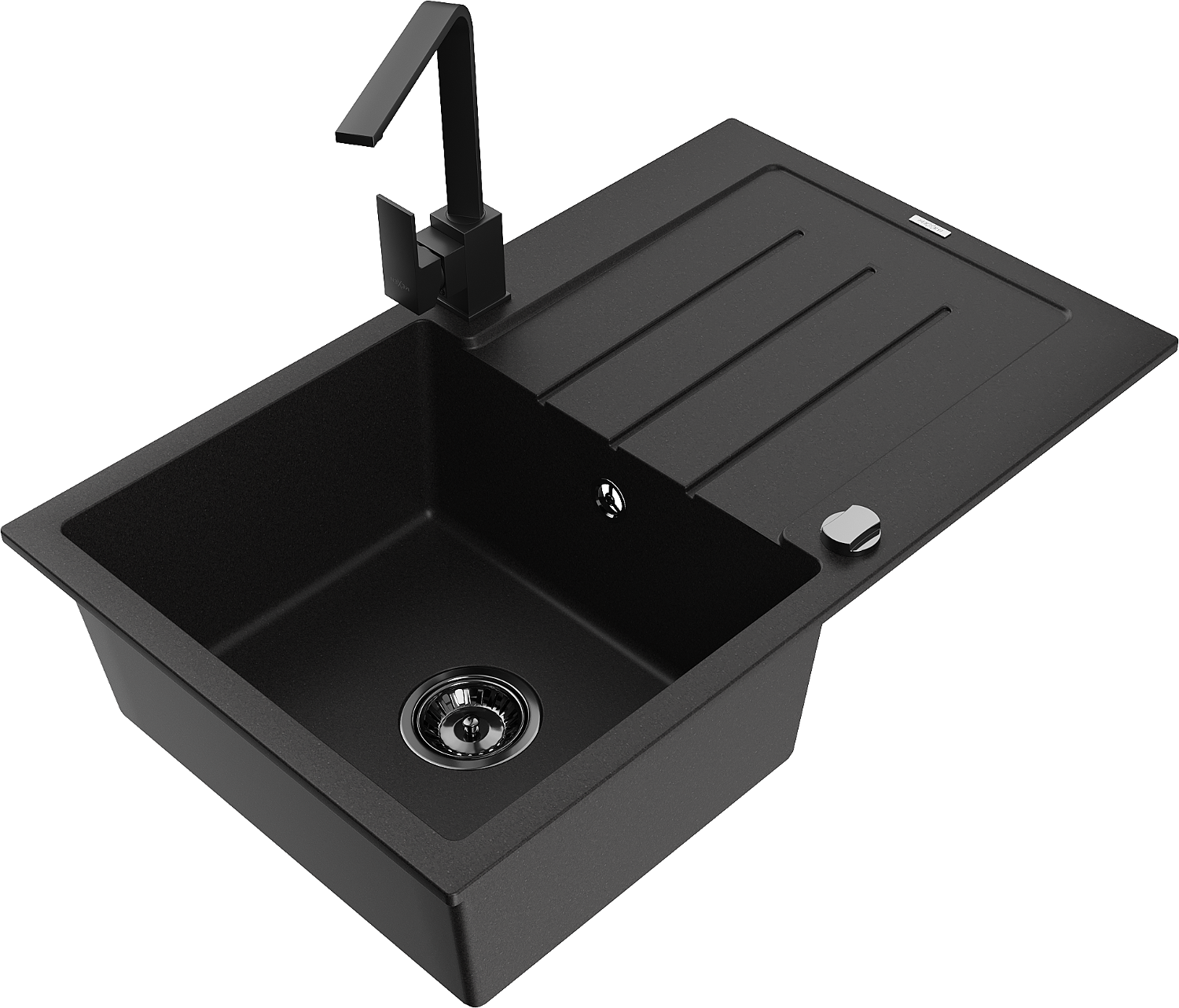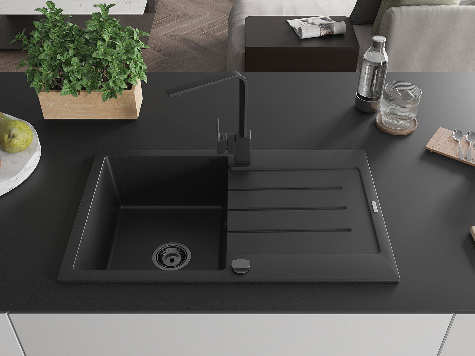 A mosogató magas minőségű gránitból készült. Elegáns, de mindenekelőtt praktikus kiegészítője minden konyhának, függetlenül annak stílusától. A gránit magas minősége és tartóssága hosszú távú használatot biztosít.