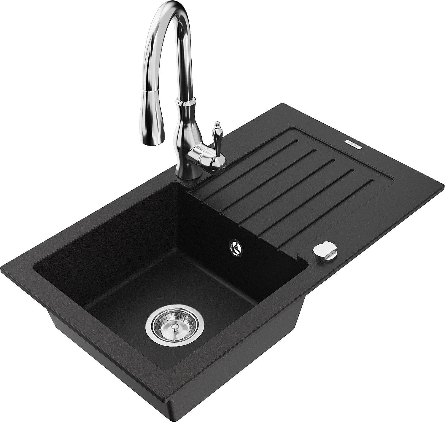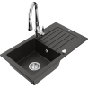 Mexen Pablo 1 rekeszes gránit mosogató csepegtetővel és Savita konyhai csappal, fekete - 6510-77-672601-00