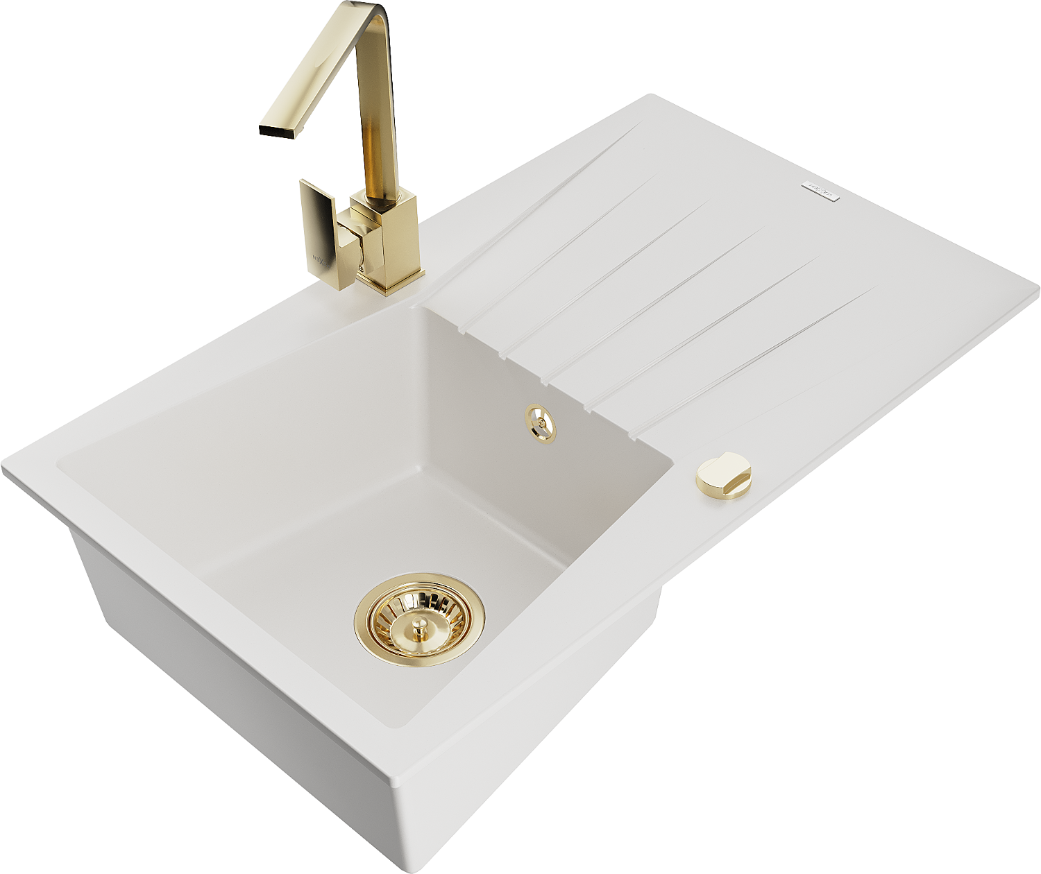 Mexen Cesar 1-medencés gránit mosogató csepegtetővel és Rita konyhai csapteleppel, fehér - 6514-20-670300-50