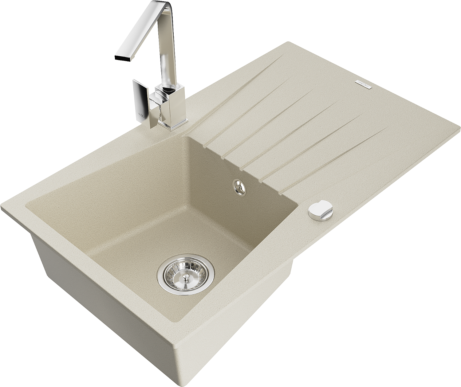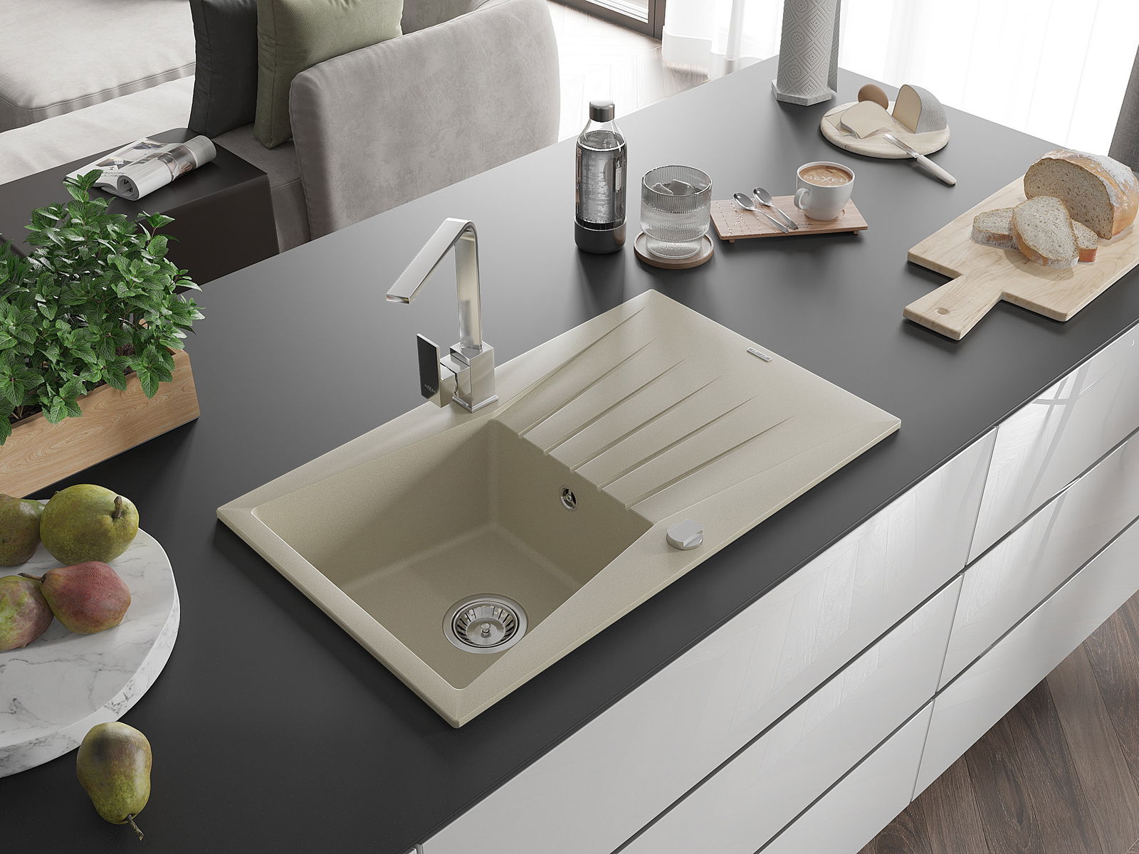 A mosogató magas minőségű gránitból készült. Elegáns, de mindenekelőtt praktikus kiegészítője minden konyhának, függetlenül annak stílusától. A gránit magas minősége és tartóssága hosszú távú használatot biztosít.
