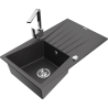 Mexen Cesar gránit mosogató 1-medencés csepegtetővel és Rita konyhai csappal, szürke - 6514-71-670300-71