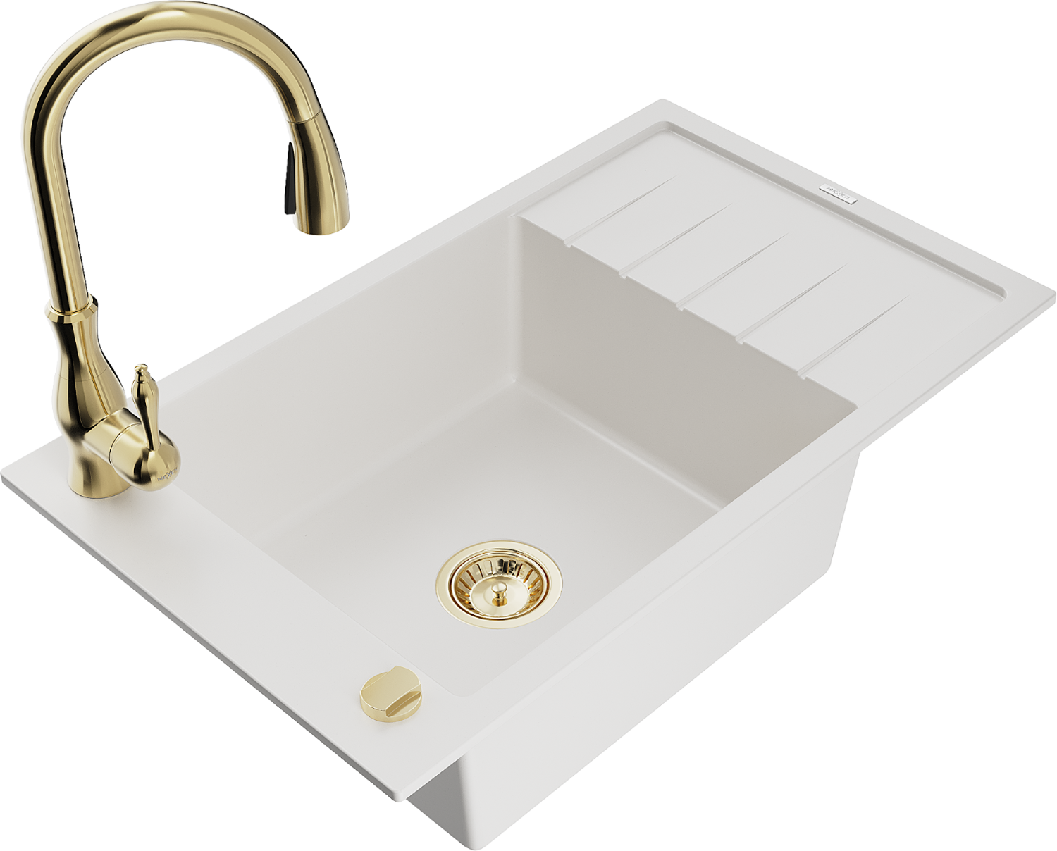 Mexen Elias egymedencés gránit mosogató csepegtetővel és Savita konyhai csappal, fehér - 6511-20-672601-50