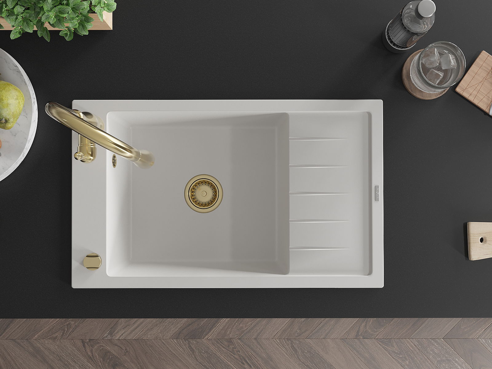 A mosogató felülete ellenáll a foltoknak és a elszíneződésnek, amelynek köszönhetően könnyű megtisztítani és hosszú ideig megtartja színét. Esztétikai és gyakorlatilag kiegészítve minden konyhát.