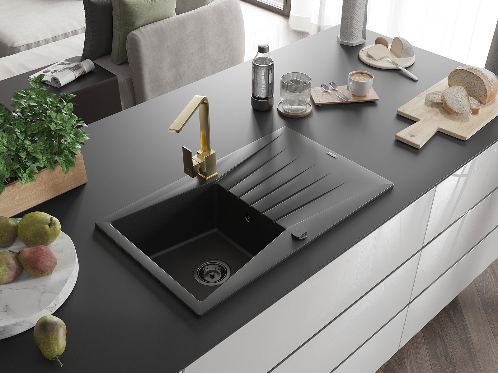 A mosogató kiváló minőségű gránitból készül. Ez egy elegáns és mindenekelőtt minden konyhához praktikus kiegészítés, stílusától függetlenül. A kiváló minőségű és a gránit tartósság biztosítja a sok éves használatát.