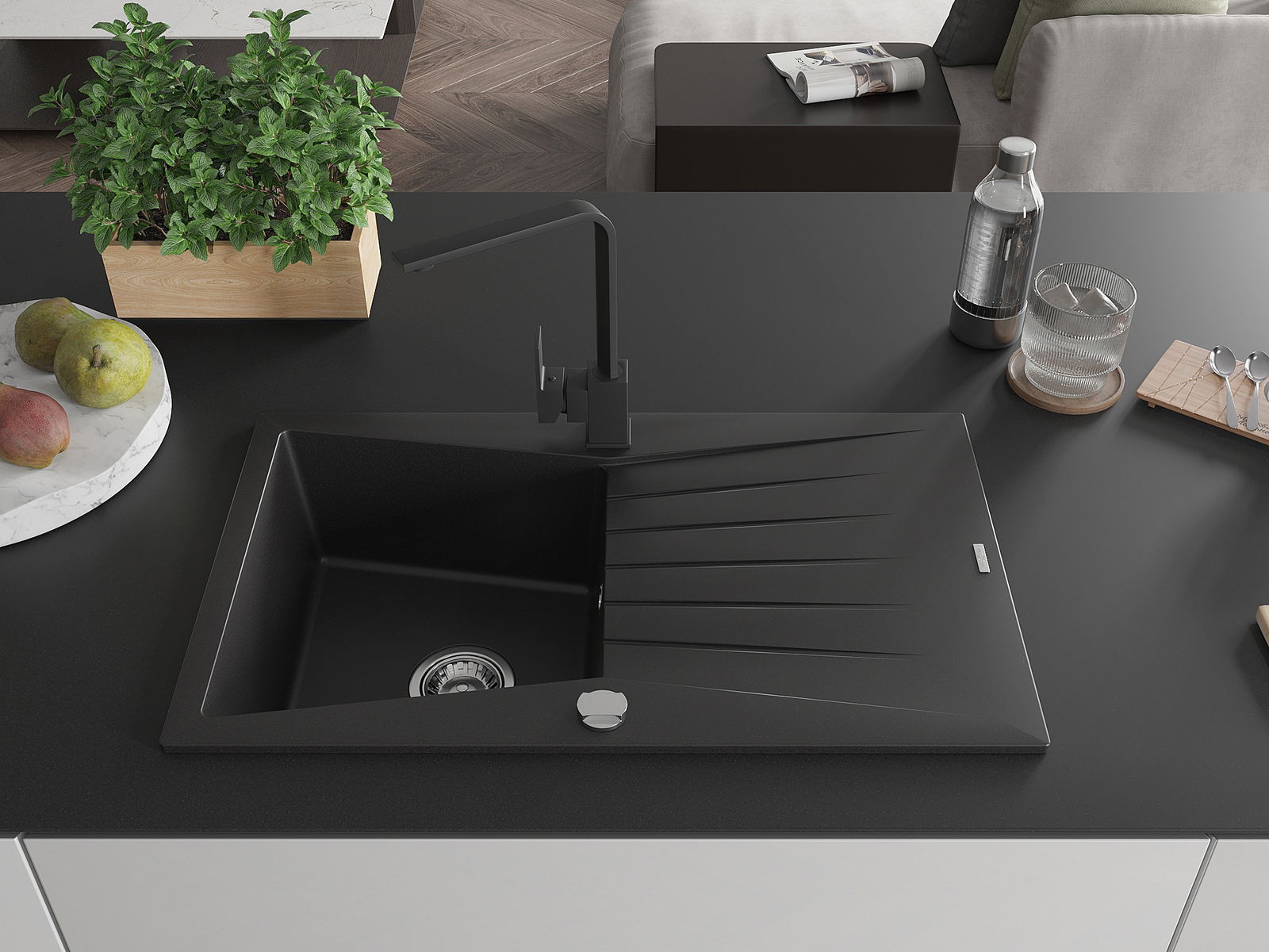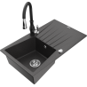 Mexen Cesar 1-medencés gránit mosogató csepegtetővel és Rita konyhai csapteleppel, fekete - 6514-77-670300-70