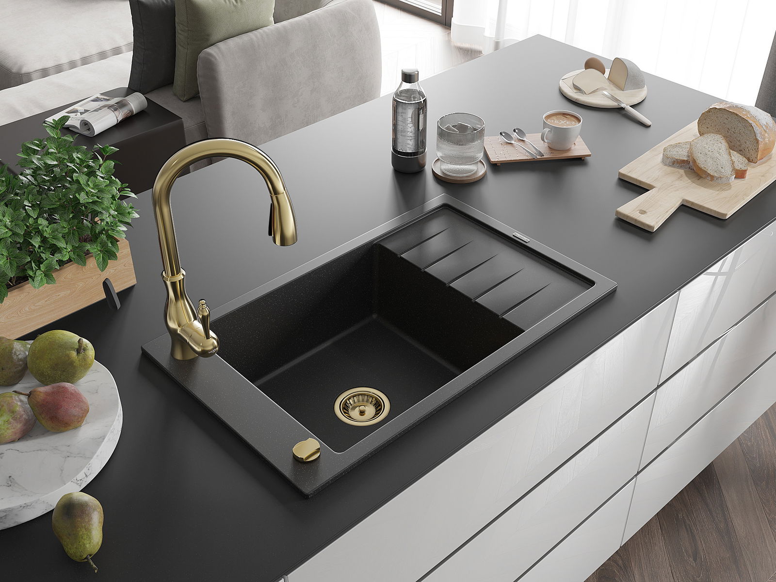 A mosogató kiváló minőségű gránitból készül. Ez egy elegáns és mindenekelőtt minden konyhához praktikus kiegészítés, stílusától függetlenül. A kiváló minőségű és a gránit tartósság biztosítja a sok éves használatát.