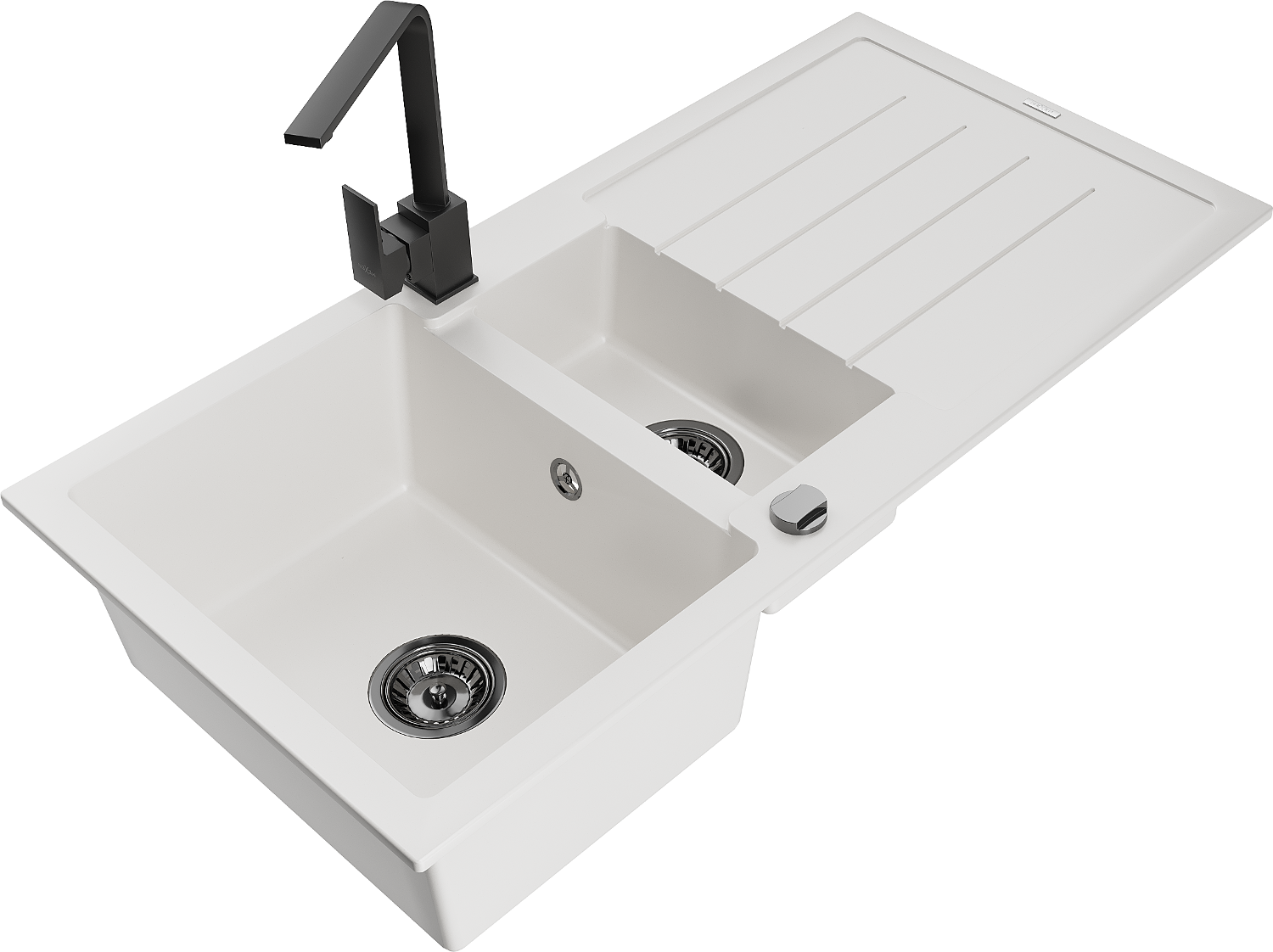 Mexen Andres 1,5 rekeszes, csepegtető tálcás, gránit mosogató Rita konyhai csapteleppel, fehér - 6515-20-670300-70