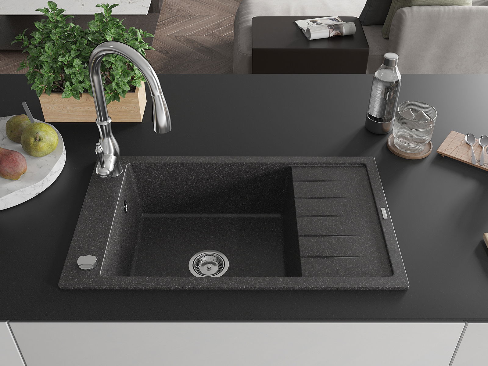 A mosogató kiváló minőségű gránitból készül. Ez egy elegáns és mindenekelőtt minden konyhához praktikus kiegészítés, stílusától függetlenül. A kiváló minőségű és a gránit tartósság biztosítja a sok éves használatát.