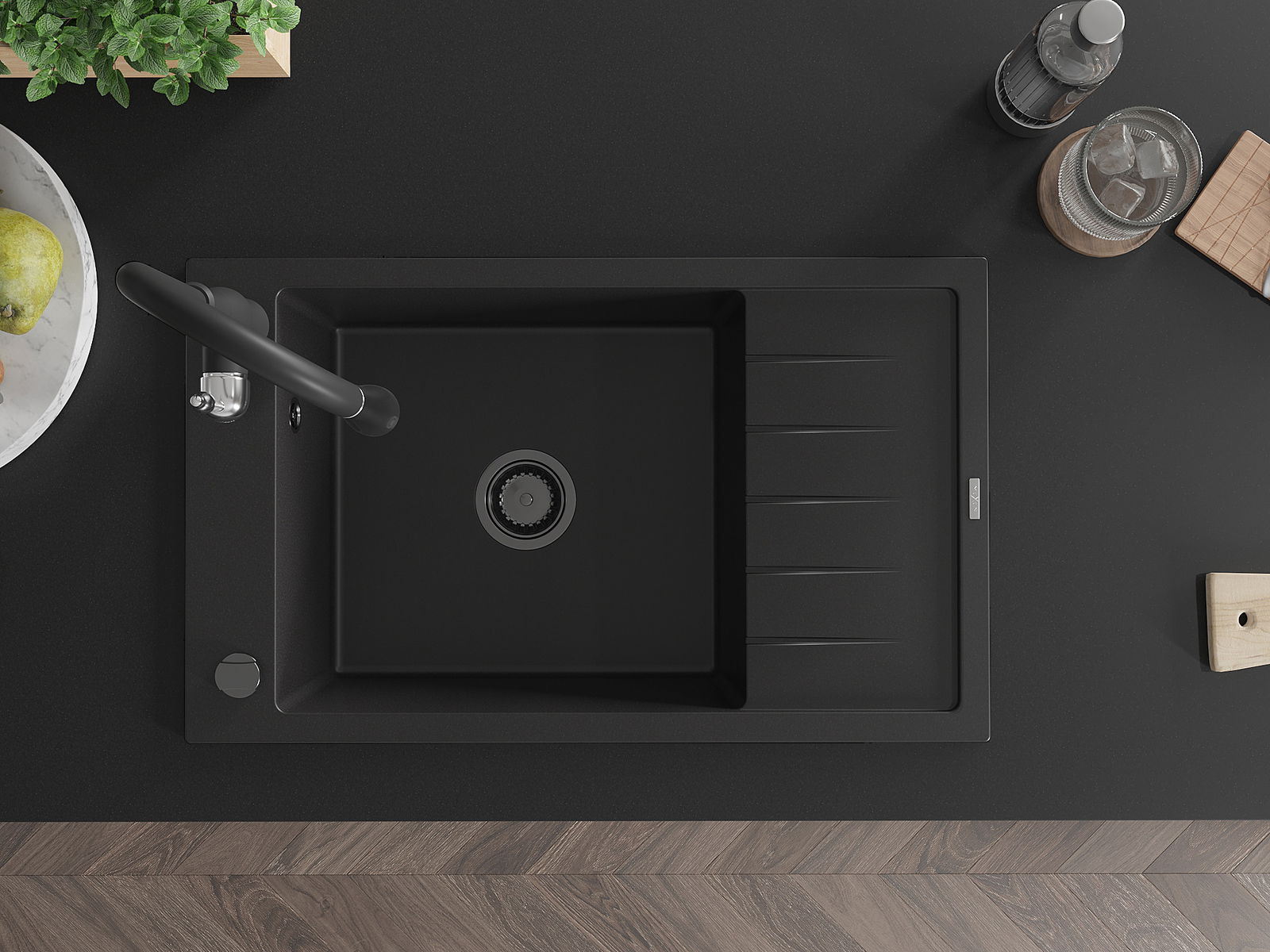 A mosogató kiváló minőségű gránitból készül. Ez egy elegáns és mindenekelőtt minden konyhához praktikus kiegészítés, stílusától függetlenül. A kiváló minőségű és a gránit tartósság biztosítja a sok éves használatát.