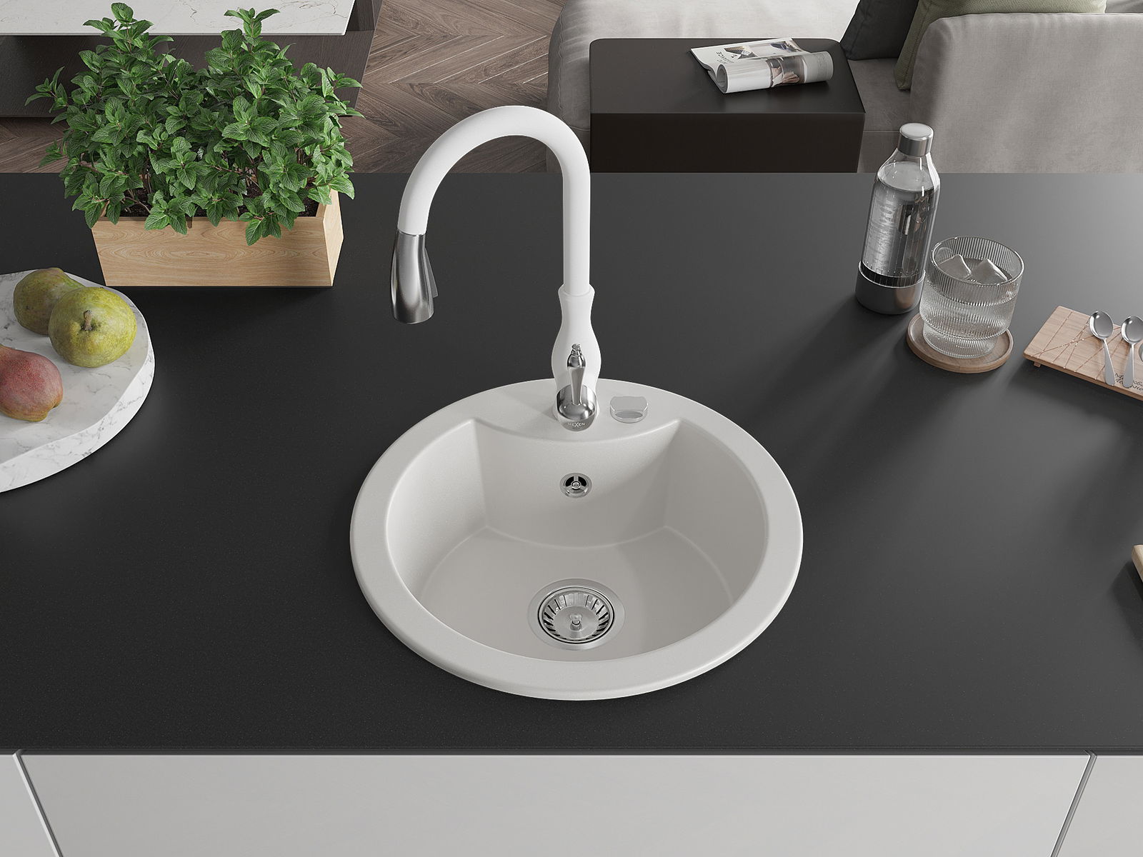 A mosogató kiváló minőségű gránitból készül. Ez egy elegáns és mindenekelőtt minden konyhához praktikus kiegészítés, stílusától függetlenül. A kiváló minőségű és a gránit tartósság biztosítja a sok éves használatát.