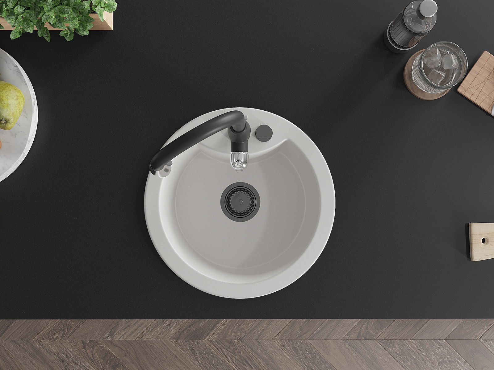 A mosogató kiváló minőségű gránitból készül. Ez egy elegáns és mindenekelőtt minden konyhához praktikus kiegészítés, stílusától függetlenül. A kiváló minőségű és a gránit tartósság biztosítja a sok éves használatát.