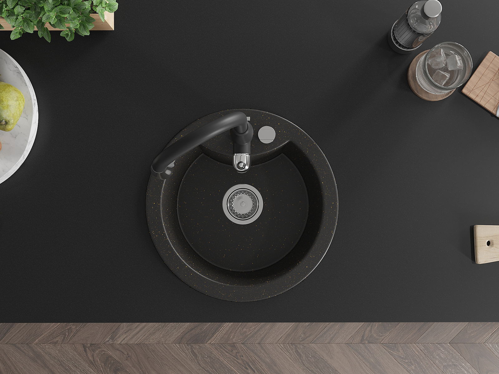 A mosogató kiváló minőségű gránitból készül. Ez egy elegáns és mindenekelőtt minden konyhához praktikus kiegészítés, stílusától függetlenül. A kiváló minőségű és a gránit tartósság biztosítja a sok éves használatát.