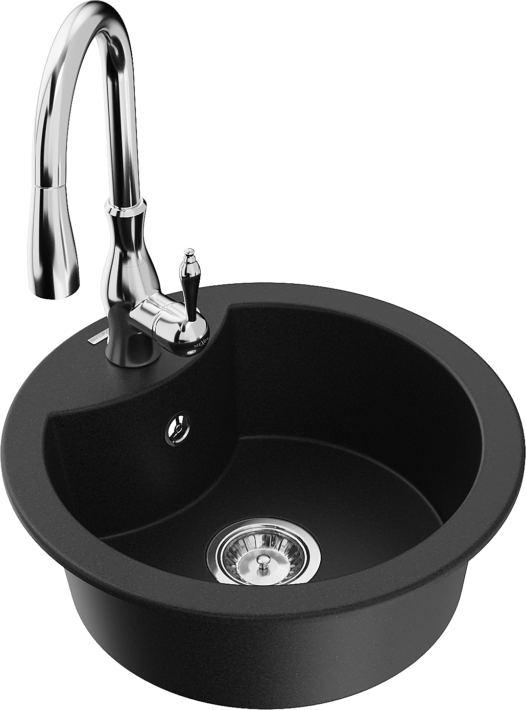 Mexen Diego 1-medencés gránit mosogató Savita konyhai csappal, fekete - 6512-77-672601-00