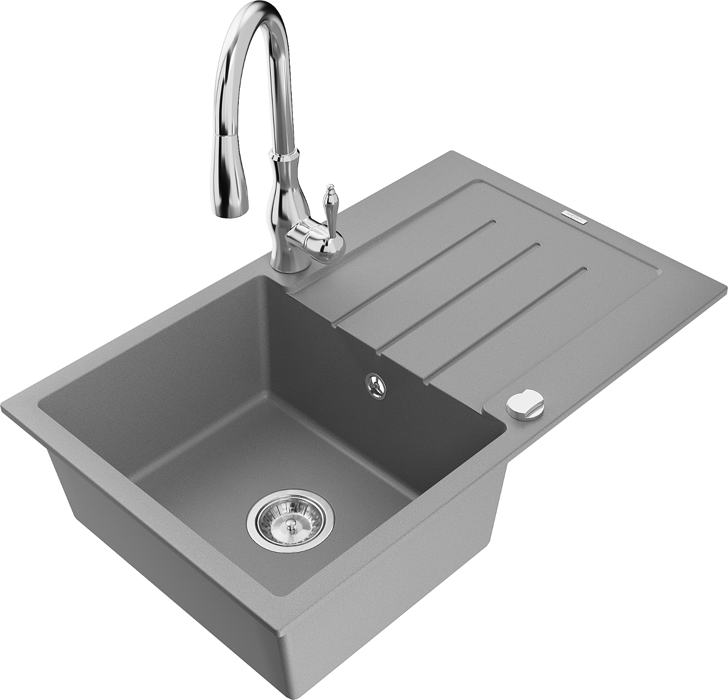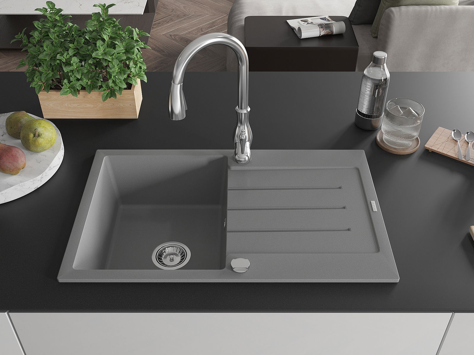Mexen Bruno egymedencés gránit mosogató csepegtetővel és Savita konyhai csapteleppel, szürke - 6513-71-672601-00