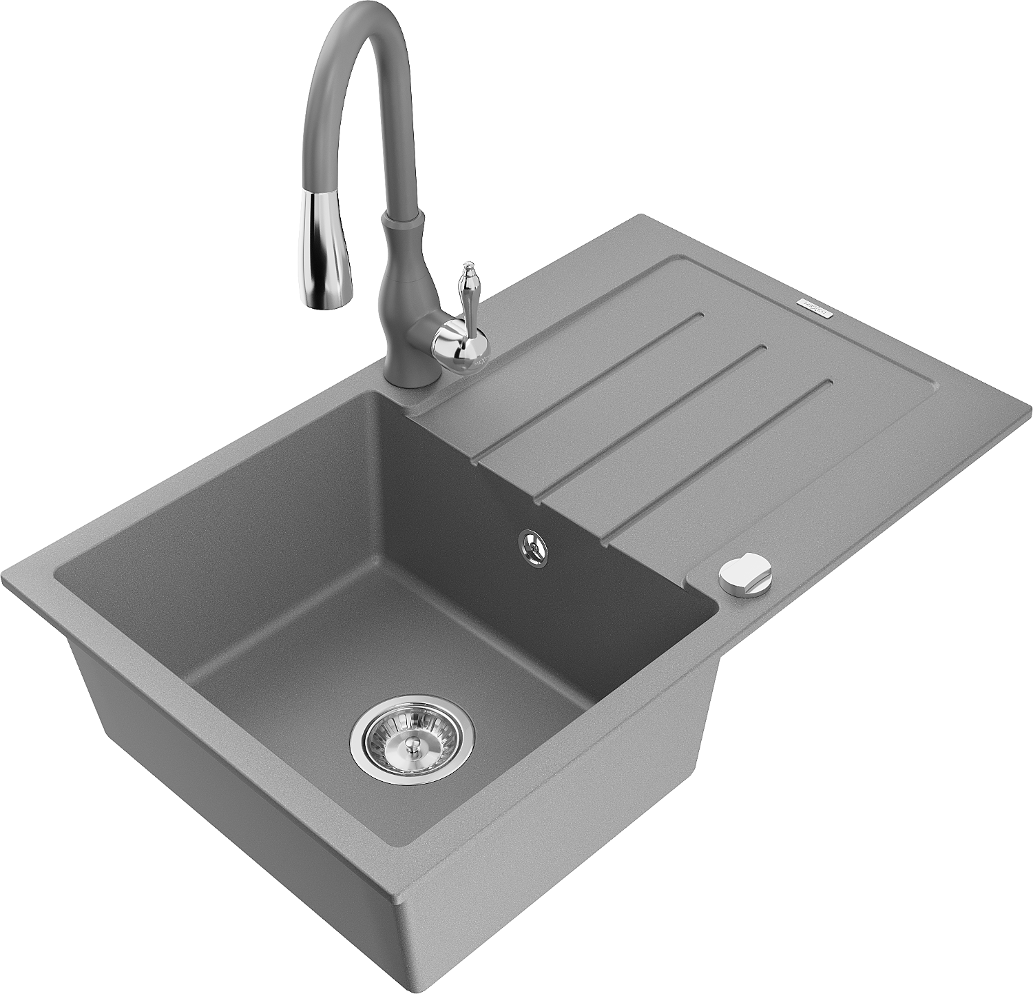 Mexen Bruno gránit mosogató 1-medencés csepegtetővel és Savita konyhai csappal, szürke - 6513-71-672601-71