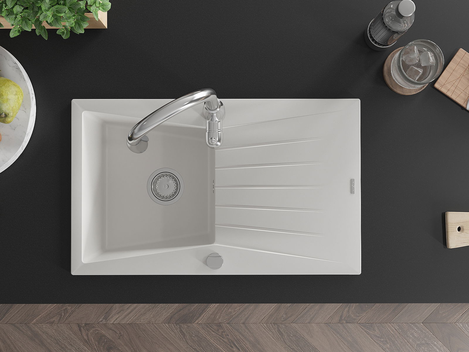 A mosogató felülete ellenáll a foltoknak és a elszíneződésnek, amelynek köszönhetően könnyű megtisztítani és hosszú ideig megtartja színét. Esztétikai és gyakorlatilag kiegészítve minden konyhát.