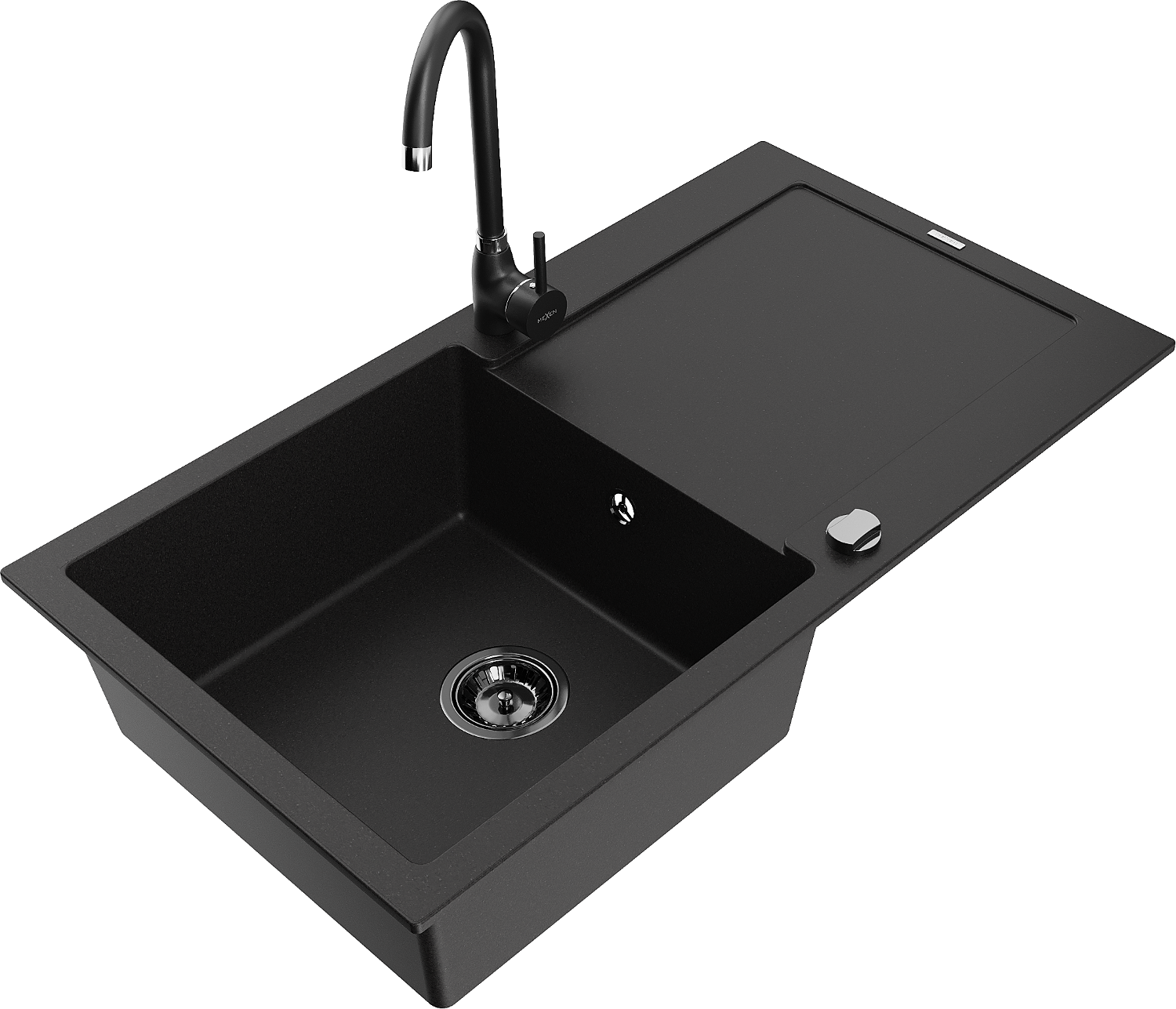 Mexen Leo 1-medencés gránit mosogató csepegtetővel és Telma konyhai csappal, fekete - 6501-77-670200-70-B