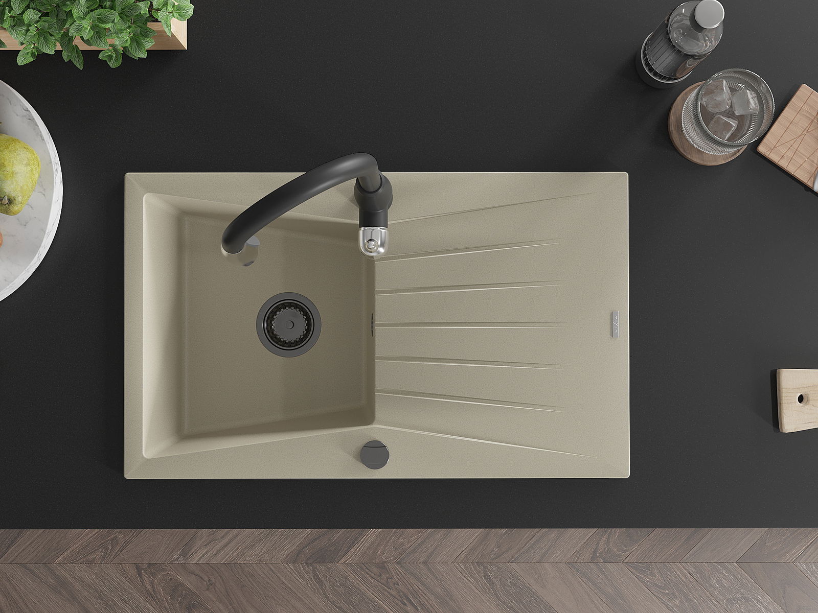 Mexen Cesar egymedencés gránit mosogató csepegtetővel és Savita konyhai csapteleppel, beige - 6514-69-672601-70