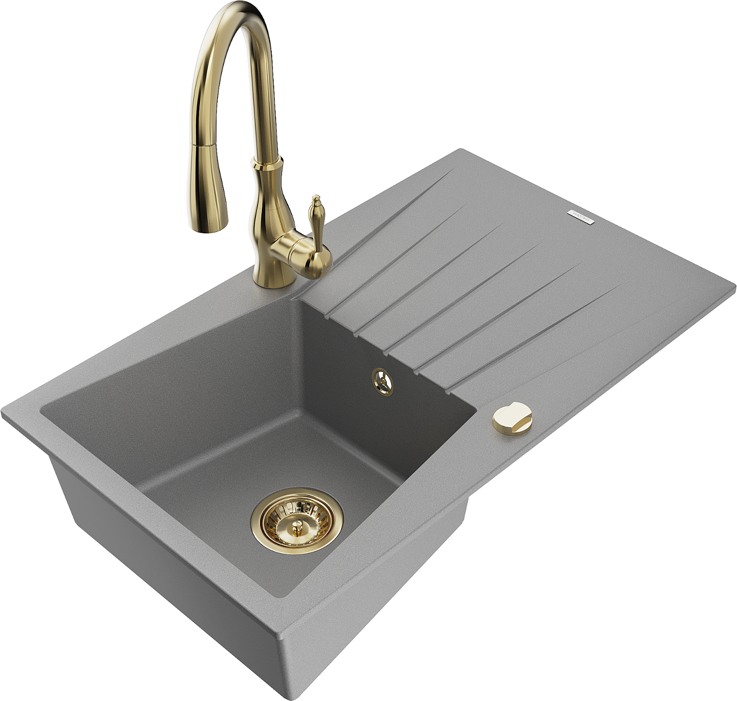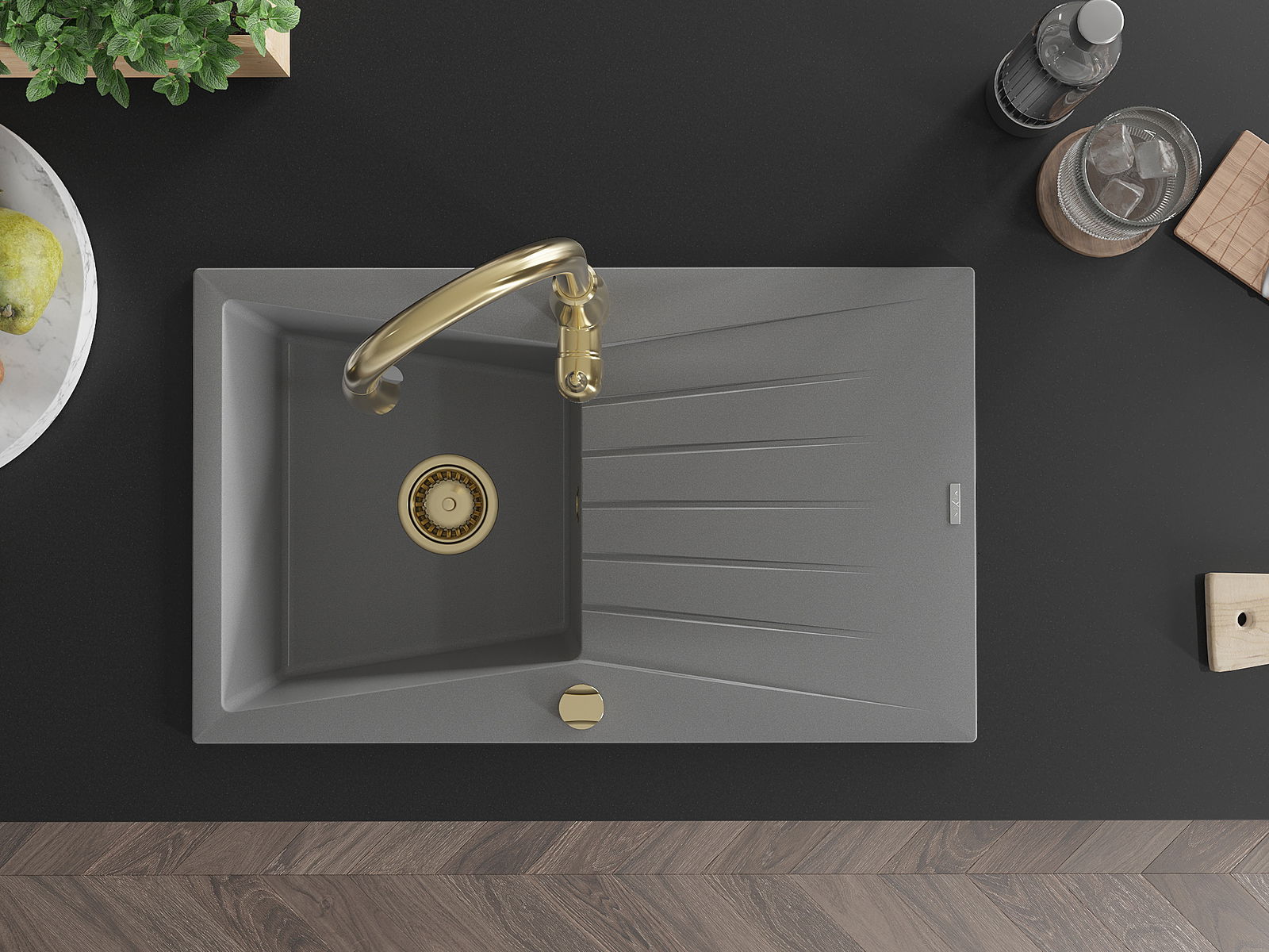 Mexen Cesar egymedencés gránit mosogató csepegtetővel és Savita konyhai csappal, szürke - 6514-71-672601-50