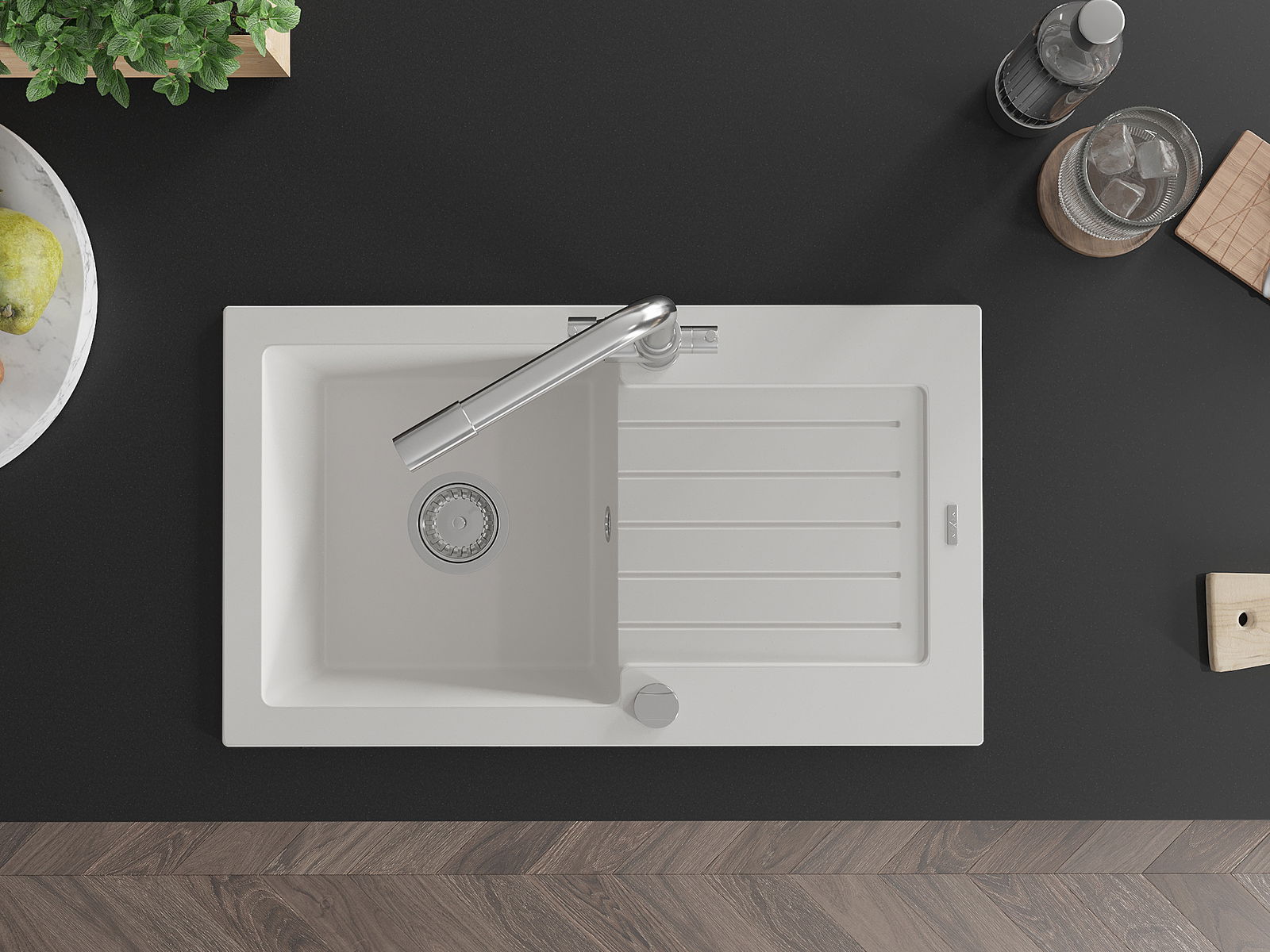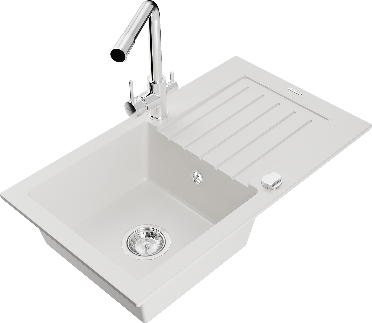 A mosogató magas minőségű gránitból készült. Elegáns, de mindenekelőtt praktikus kiegészítője minden konyhának, függetlenül annak stílusától. A gránit magas minősége és tartóssága hosszú távú használatot biztosít.