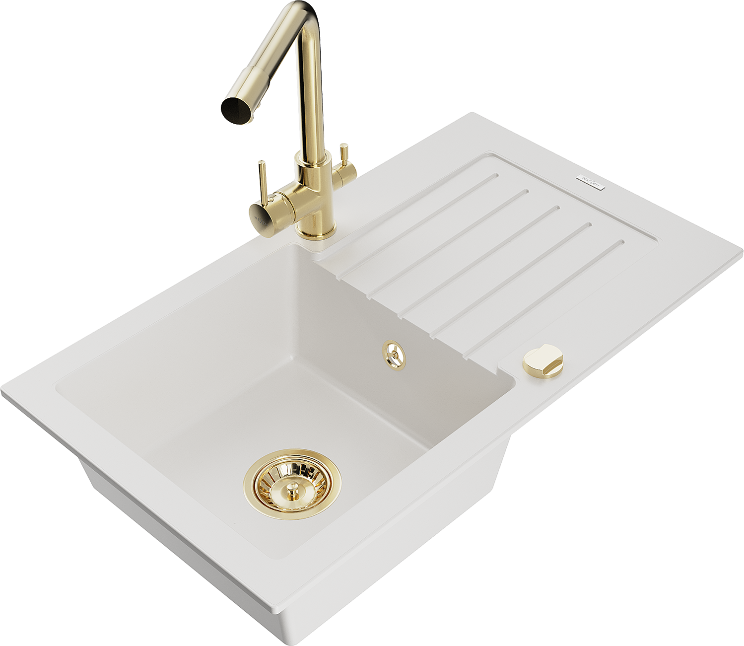 Mexen Pablo gránit mosogató, 1 rekeszes csepegtetővel és Duero konyhai csapteleppel, fehér - 6510-20-671600-50