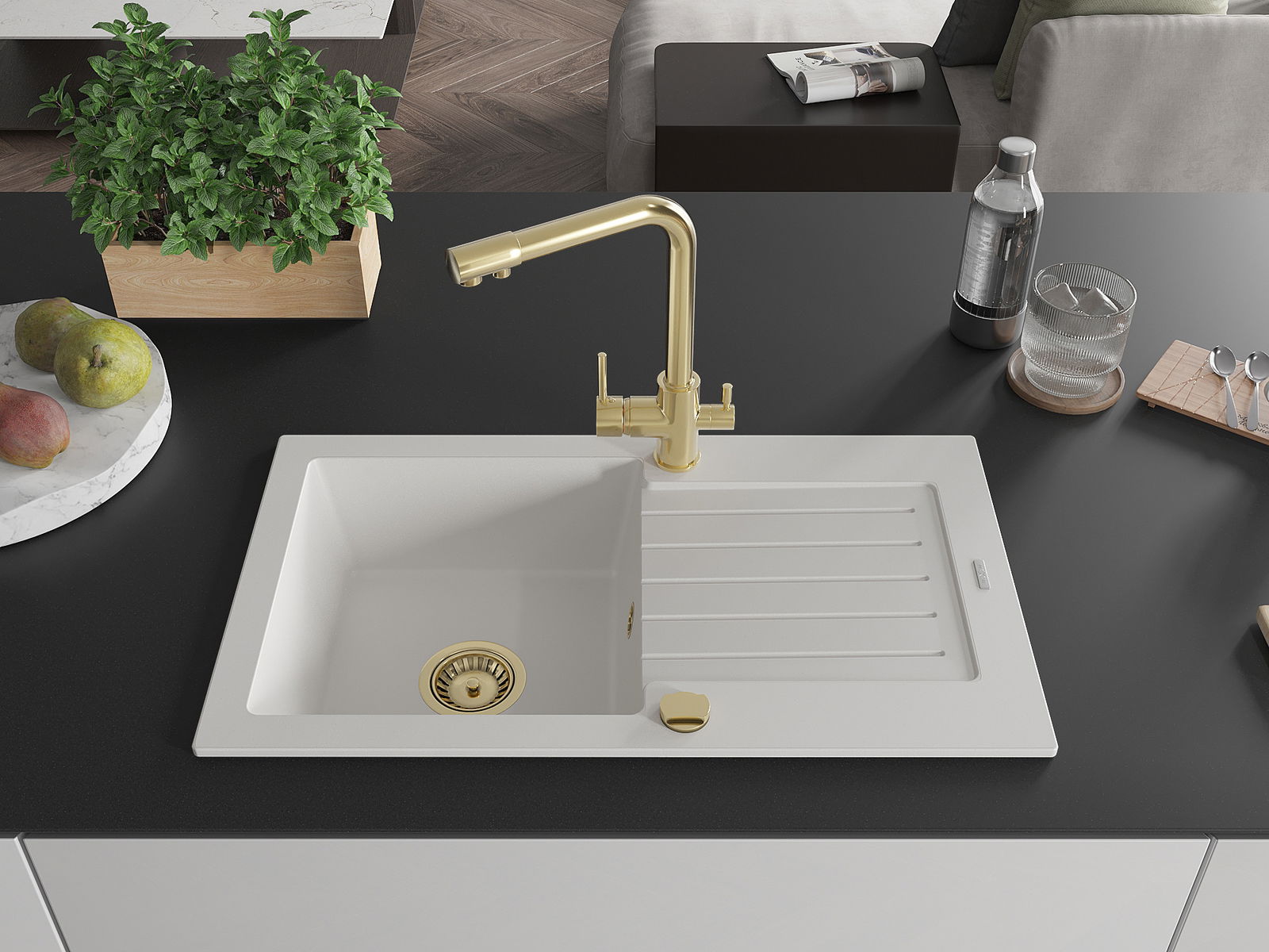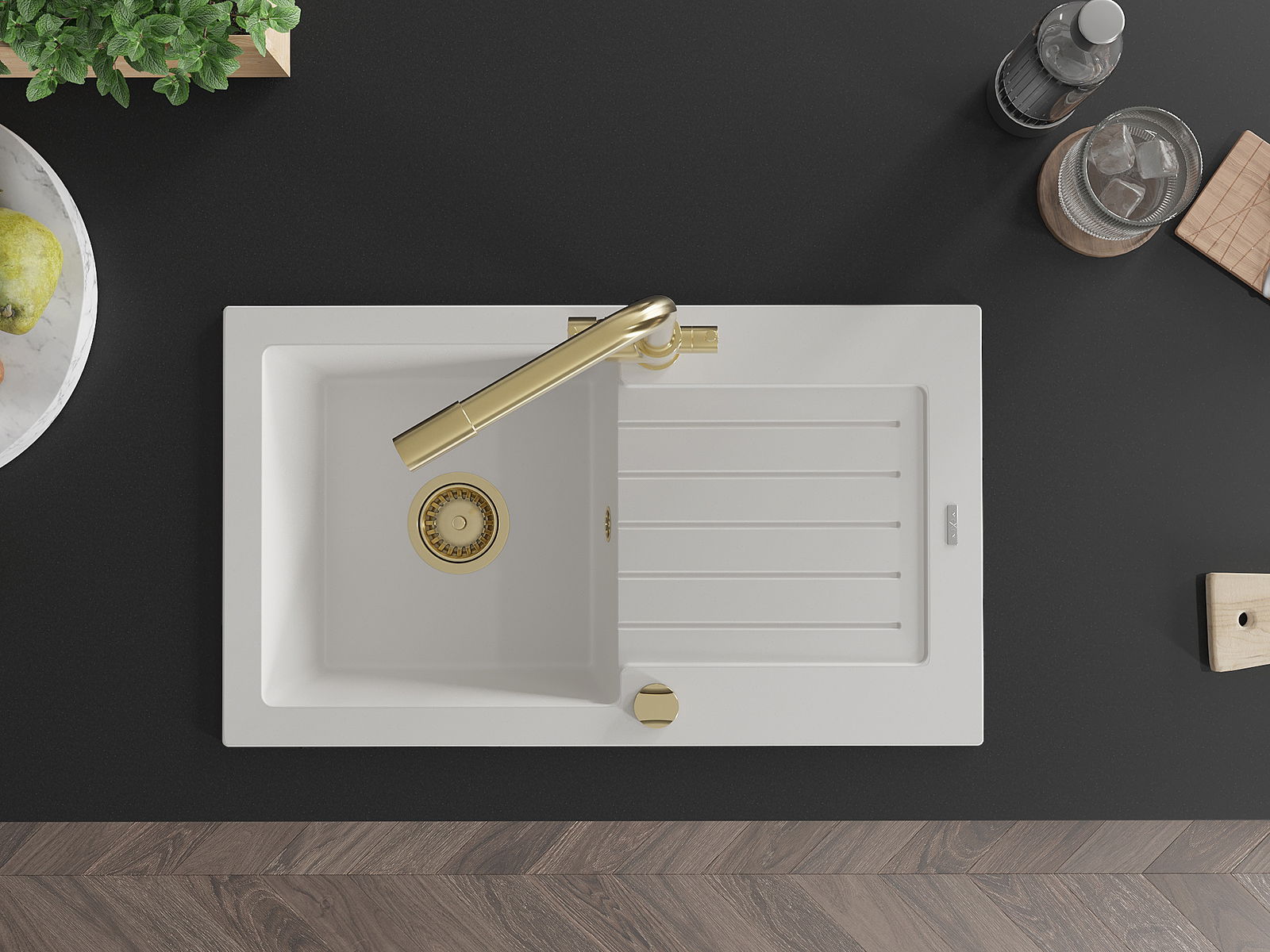 A mosogató magas minőségű gránitból készült. Elegáns, de mindenekelőtt praktikus kiegészítője minden konyhának, függetlenül annak stílusától. A gránit magas minősége és tartóssága hosszú távú használatot biztosít.