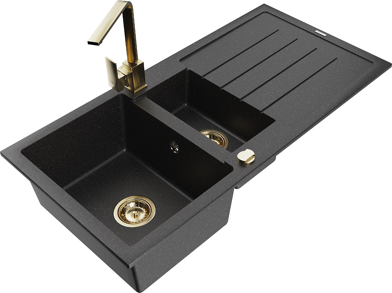 Mexen Andres gránit mosogató 1,5 rekeszes csepegtetővel és Rita konyhai csapteleppel, fekete/ezüst metál - 6515-73-670300-50