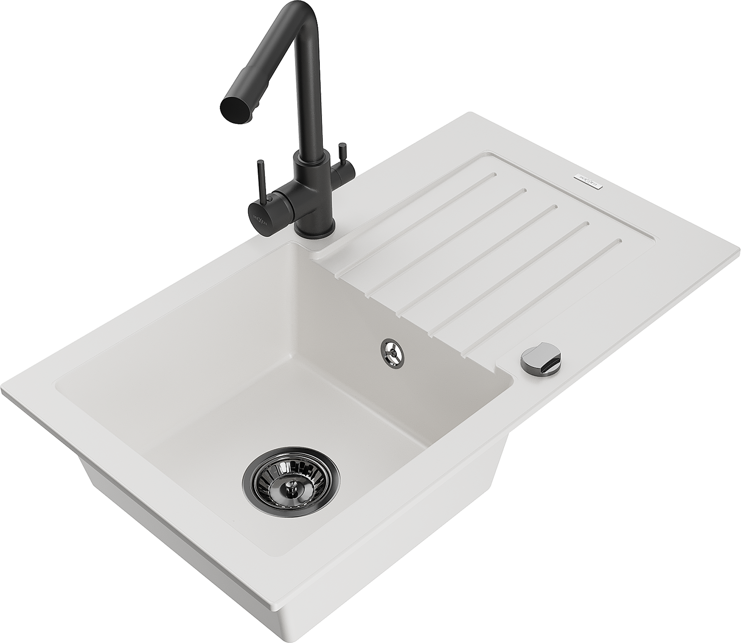 Mexen Pablo egymedencés gránit mosogató csepegtetővel és Duero konyhai csapteleppel, fehér - 6510-20-671600-70