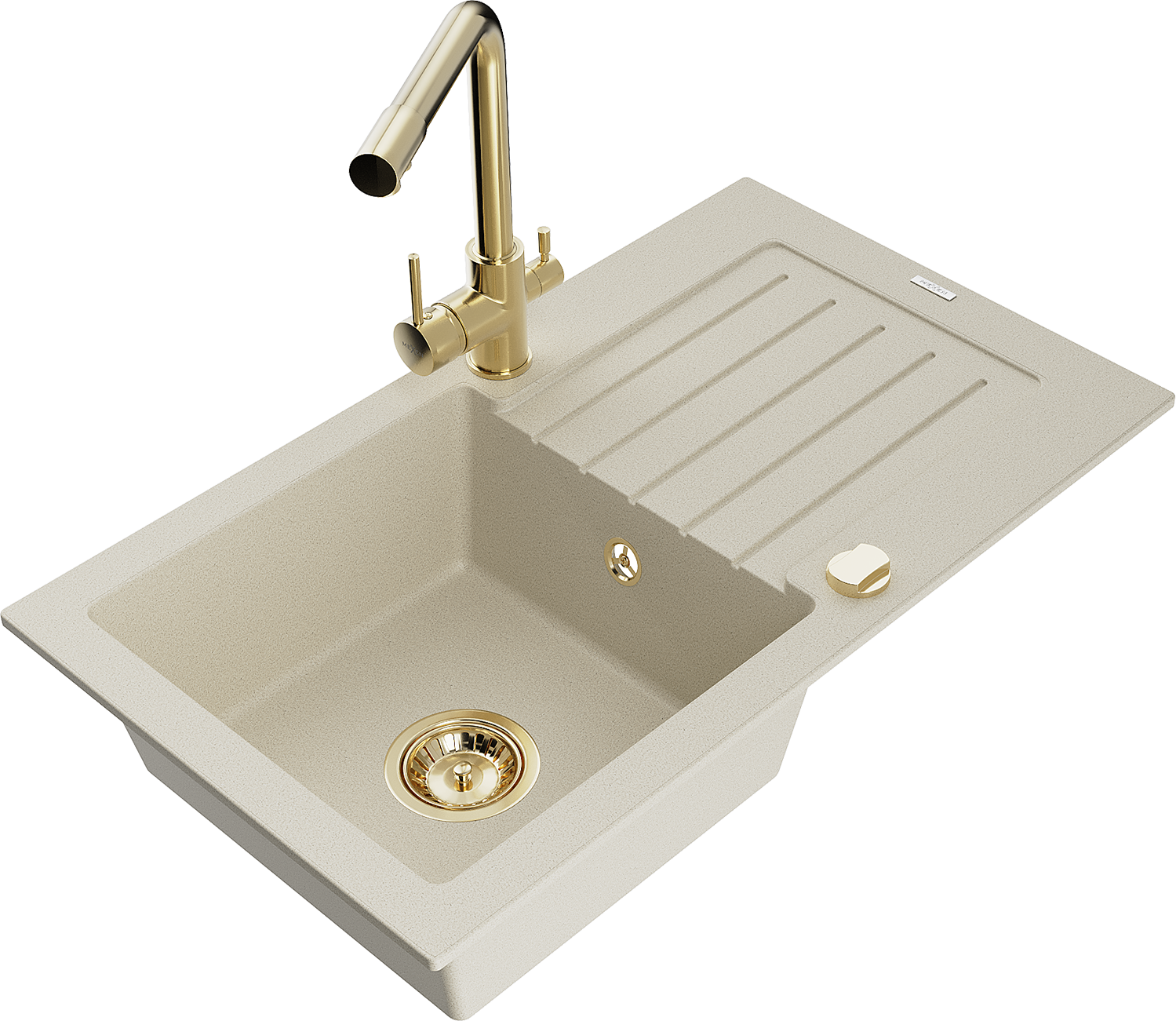 Mexen Pablo egymedencés gránit mosogató csepegtetővel és Duero konyhai csapteleppel, bézs - 6510-69-671600-50