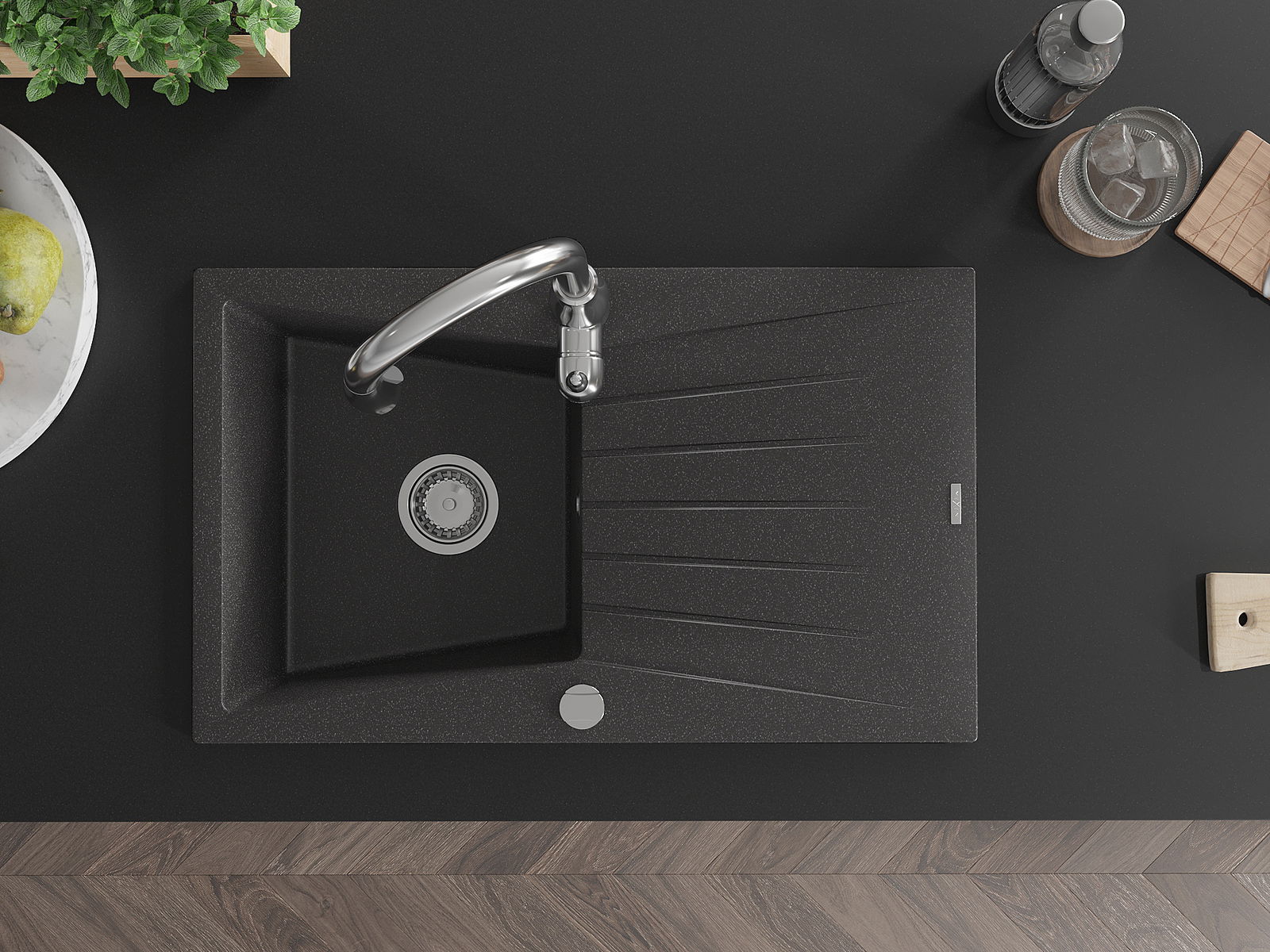 A mosogató kiváló minőségű gránitból készül. Ez egy elegáns és mindenekelőtt minden konyhához praktikus kiegészítés, stílusától függetlenül. A kiváló minőségű és a gránit tartósság biztosítja a sok éves használatát.