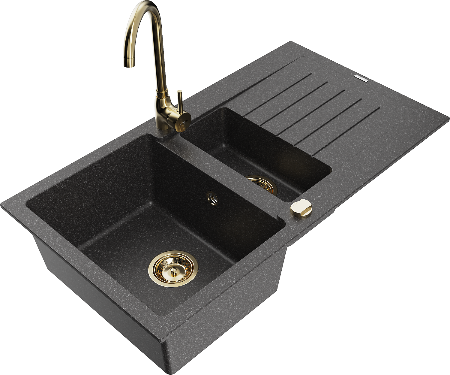 Mexen Matias 1,5 rekeszes gránit mosogató csepegtetővel és Telma konyhai csapteleppel, fekete pöttyös - 6502-76-670200-50