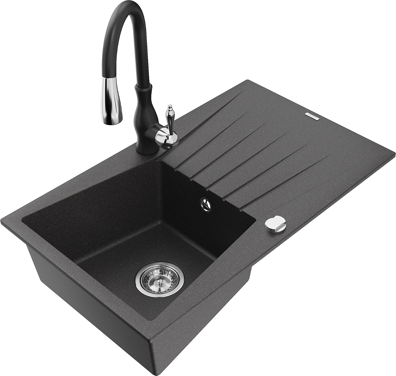 A mosogató magas minőségű gránitból készült. Elegáns, de mindenekelőtt praktikus kiegészítője minden konyhának, függetlenül annak stílusától. A gránit magas minősége és tartóssága hosszú távú használatot biztosít.